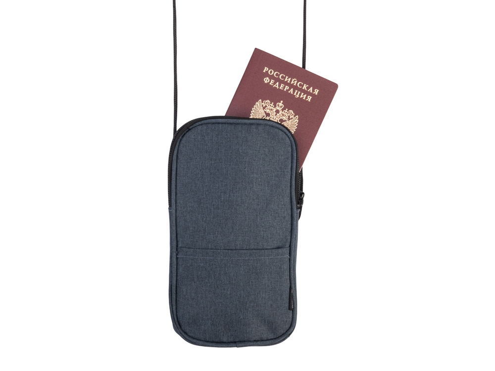 Мобильный чехол из полиэстера RPET. Основное отделение с застежкой-молнией. Внешний карман. В комплект входит шнурок для переноски. Длина шнурка 122 см.