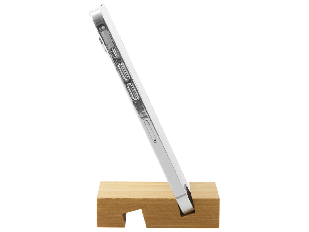 Экологичная подставка из натурального бамбука для мобильных устройств, планшетов или смартфонов. Имеет 2 разъема разной толщины, это позволяет как использовать ее с большим количеством гаджетов, так и менять наклон устройства при использовании.