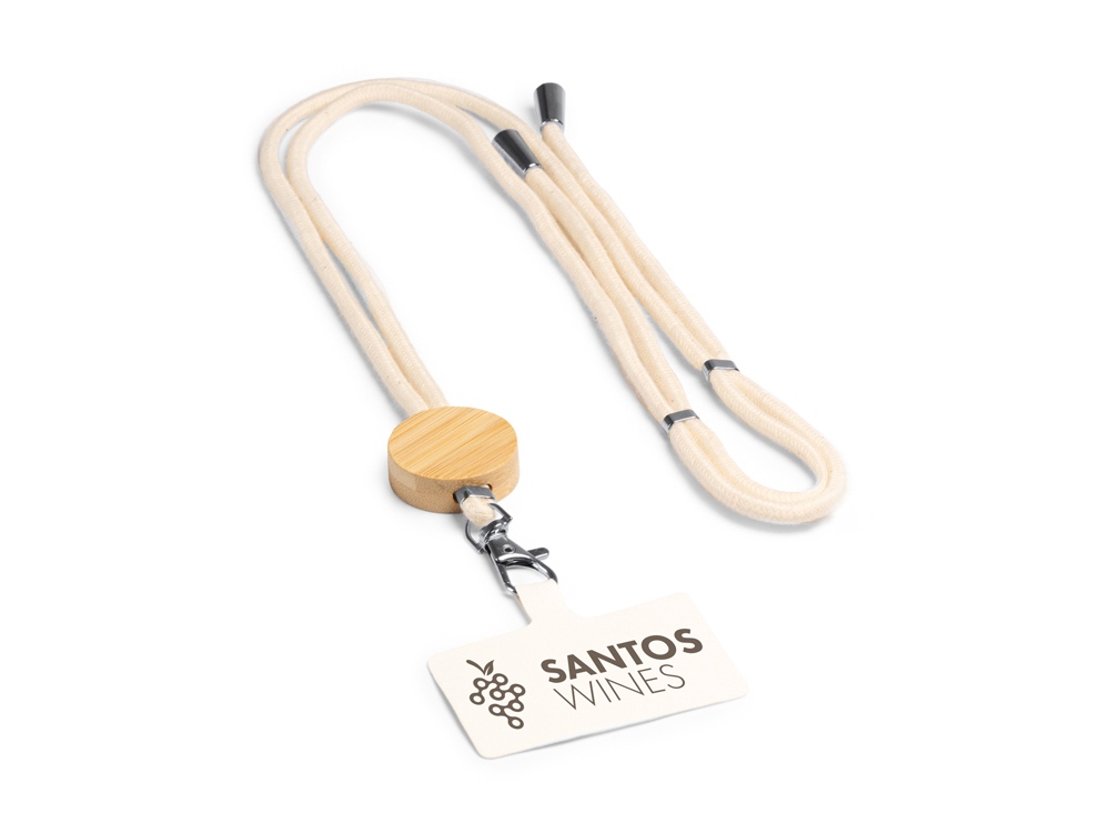 Шнурок-держатель для мобильного телефона из хлопка с бамбуковыми вставками и системой регулировки.