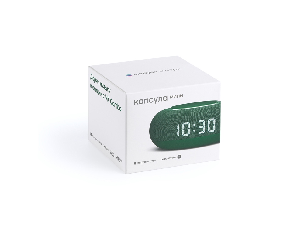 VK Капсула Мини — компактная умная колонка c дисплеем, который показывает время, погоду и милые глазки Маруси. Капсула Мини представлена в пяти цветах и отлично смотрится в любом интерьере.