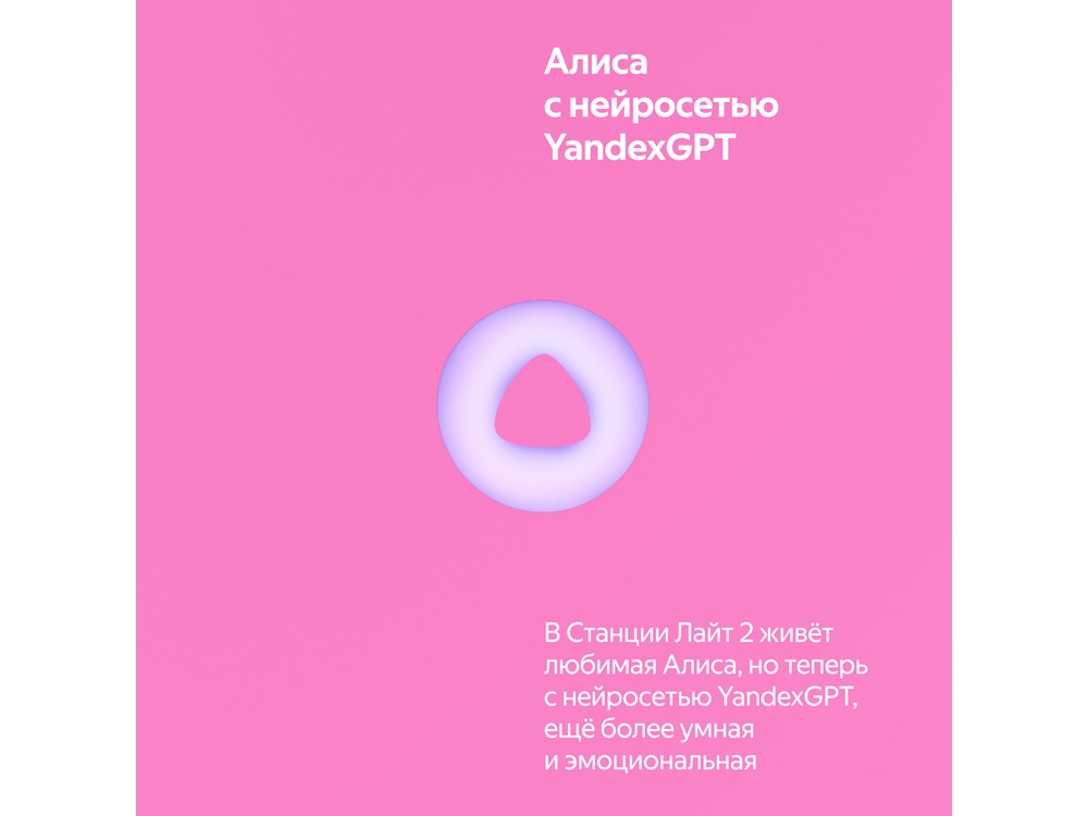 В Станции Лайт 2 живёт любимая Алиса, но теперь с нейросетью YandexGPT, ещё более умная, функциональная и эмоциональная. День за днём, детям и взрослым её компания никогда не наскучит.
