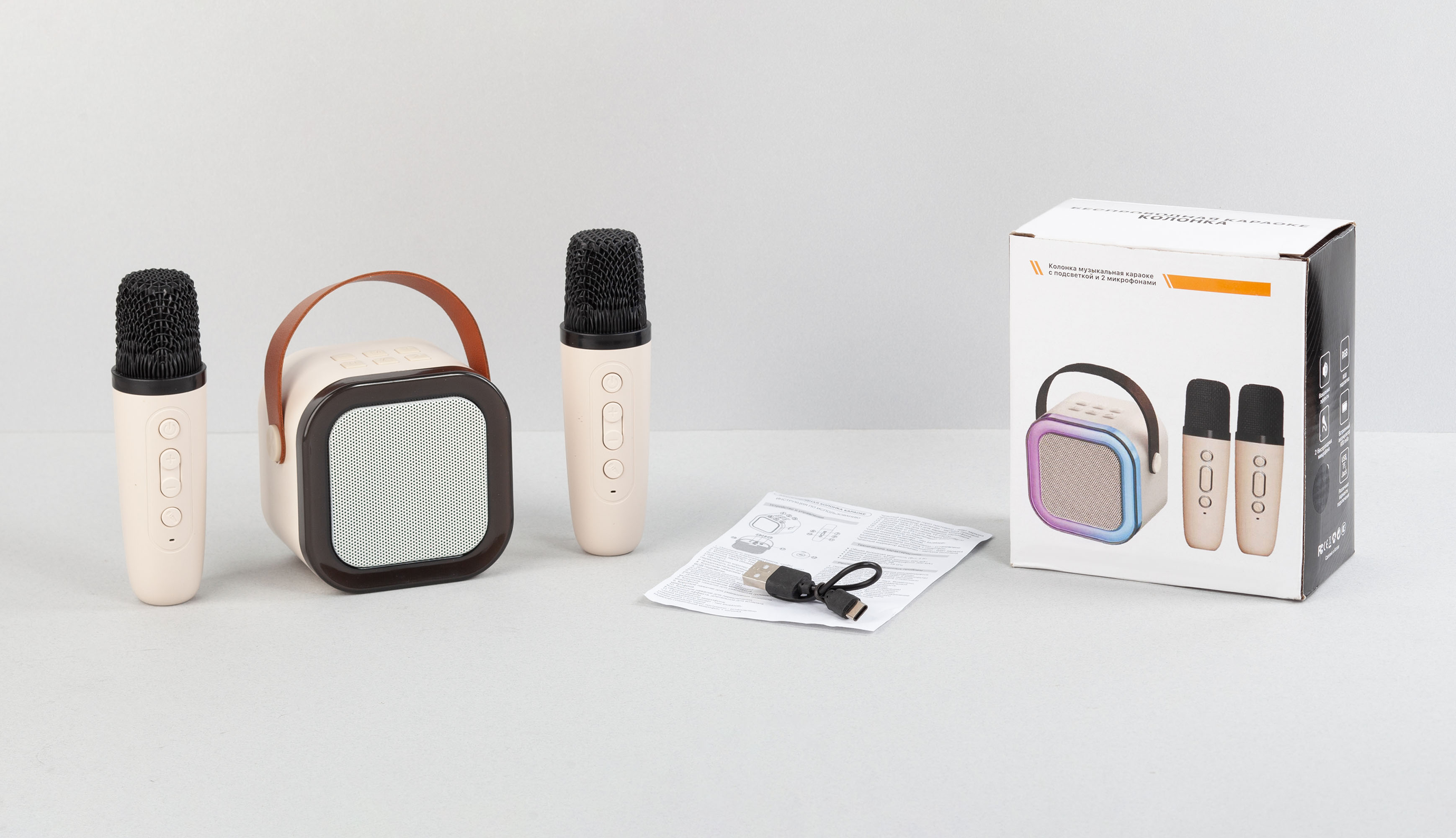 Bluetooth-колонка мощностью 3W с аккумулятором на 600 mAh. В комплекте два микрофона. Яркая RGB-подсветка с разными режимами задает неповторимую атмосферу. Доступно воспроизведение c USB-флешек, TF-карт, проводом через разъем jack.