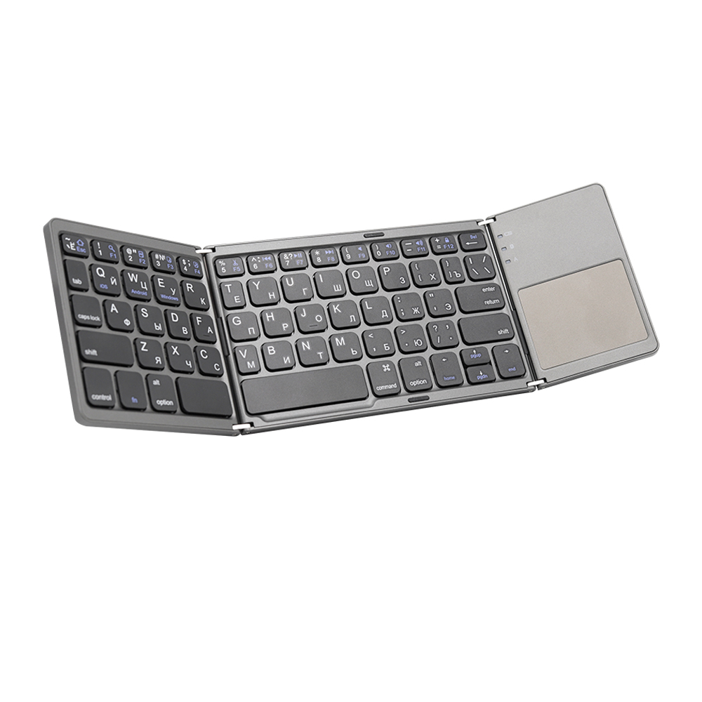 Портативная раскладная клавиатура Flexibord отличный помощник в путешествии, походе или кафе - в любом месте где можно удобно устроится с планшетом или телефоном для виртуального серфинга или общения в чате. Имеется удобный touchpad c отличной реакцией отклика. Встроенный аккумулятор, обеспечивающий продолжительность работы в 3-4 часа. И что самое приятное, раскладка клавиатуры дублируется русским алфавитом.