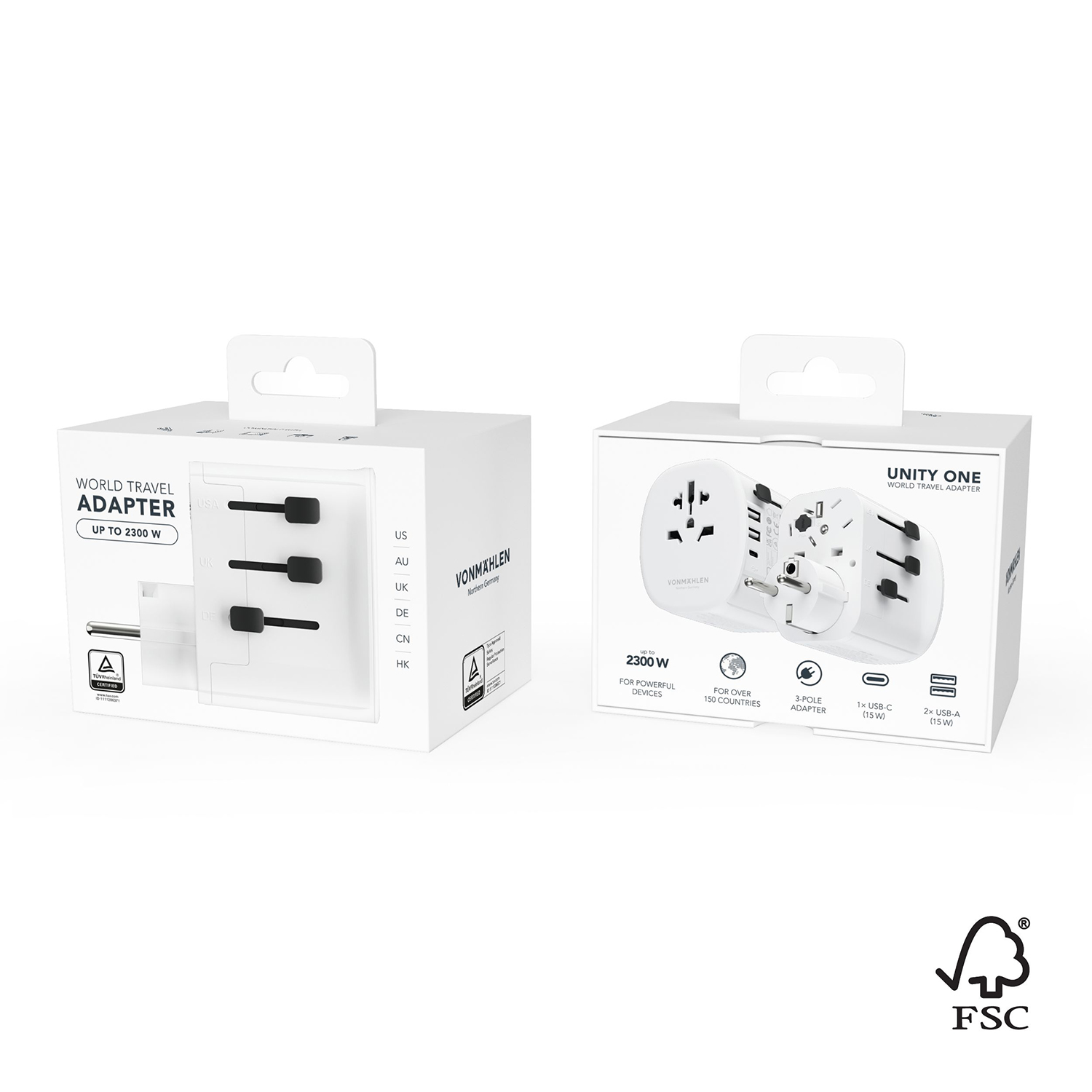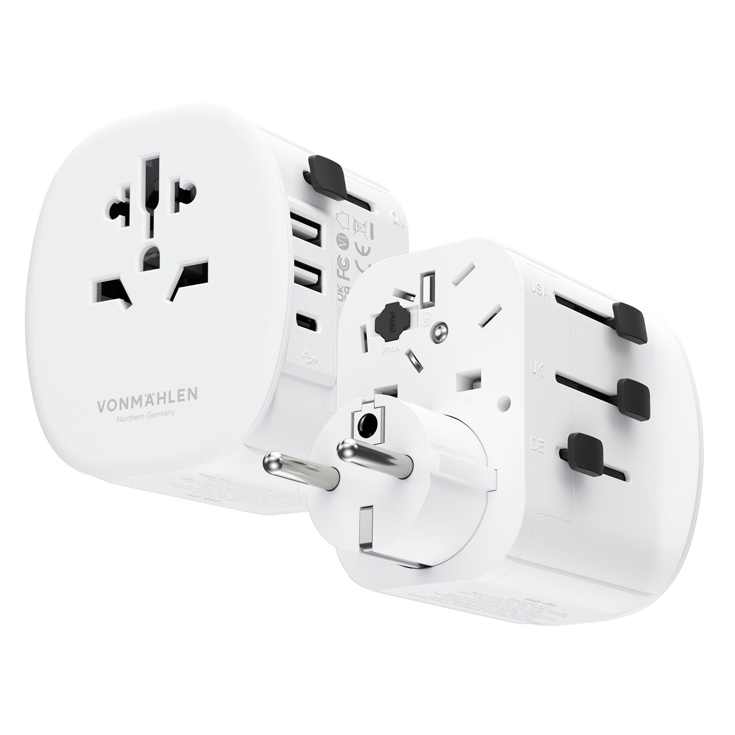 VONMAHLEN Unity One — это компактное дорожное зарядное устройство и идеальный спутник, куда бы вы ни отправились. Адаптер совместим с розетками более чем в 150 странах. Мощность до 2300 Вт, два порта USB-A и один порт USB-C (15 Вт) позволяют заряжать несколько устройств одновременно. В VONMAHLEN Unity One встроена защита от перегрузки и короткого замыкания. Это идеальный вариант для быстрой зарядки смартфонов, ноутбуков, фотоаппаратов, бритв и многого другого. Продуманный дизайн выдвижных частей адаптера делает VONMAHLEN Unity One простым и удобным в транспортировке.