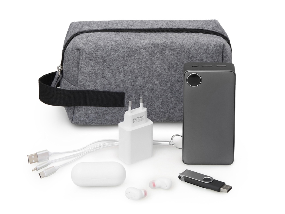 Идеальное решение для организации большого количества гаджетов! Felt - это органайзер из высококачественного RPET-фетра, который не только бережно хранит вашу электронику, но и заботится о планете. Его объем позволяет разместить множество проводов, несколько пауэрбанков, все типы наушников, адаптеры и даже внешние жесткие диски. Удобная ручка позволит носить его как самостоятельный аксессуар или легко доставать из сумки. Этот органайзер — это не просто хранение, это комфорт и забота о ваших технологиях!