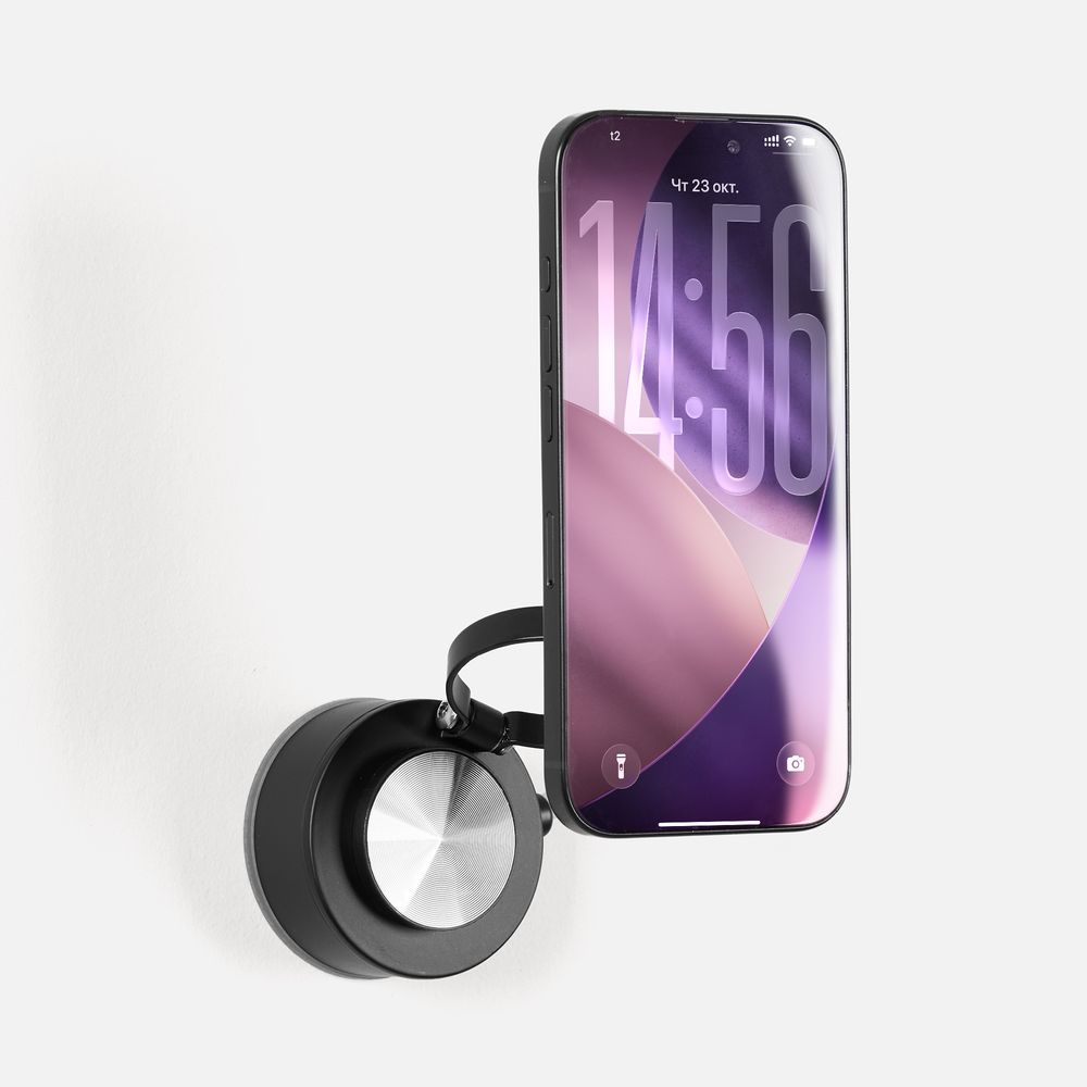 Подставка имеет встроенный магнит, что добавляет устойчивости при фиксации устройств с металлическим корпусом. К прочим устройствам на корпус можно добавить металлическое кольцо, которое входит в комплект.