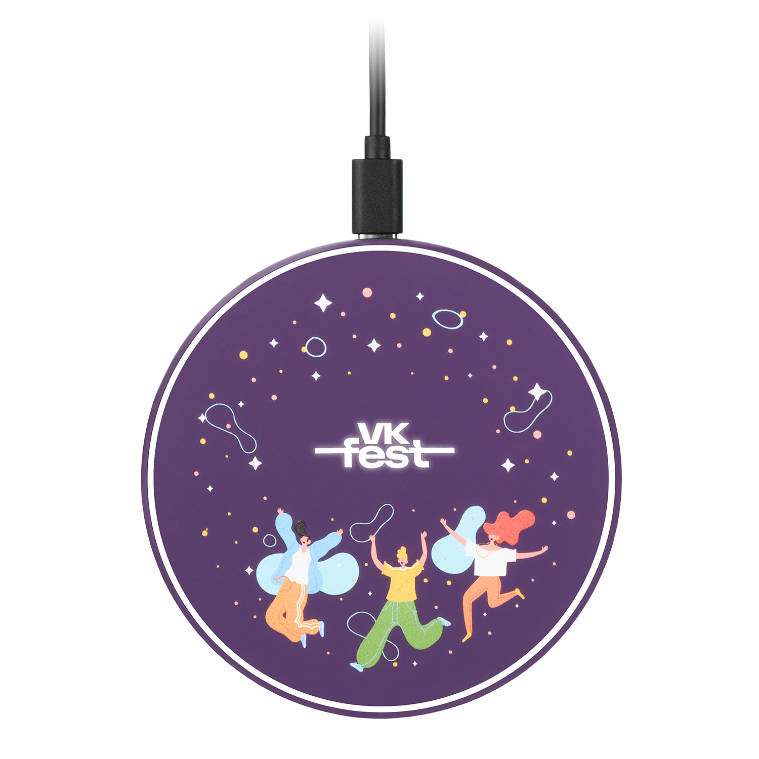 Беспроводное зарядное устройство 15W с подсветкой и покрытием soft-touch. Встроенная LED-панель позволяет создать эффектную подсветку логотипа посредством лазерной гравировки, удачно завершая композицию аксессуара.