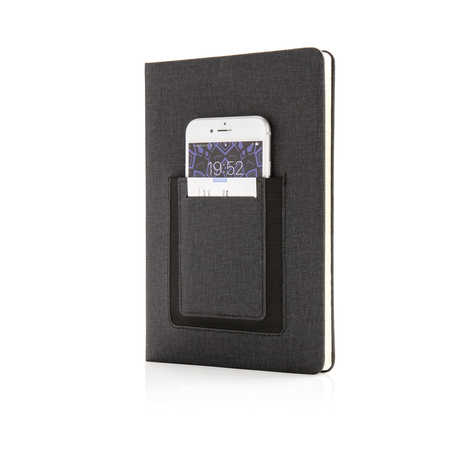 Удобный блокнот Deluxe формата А5 с кармашком для телефона, чехлом для карты и лентой-закладкой. 80 листов/160 страниц плотностью 78 г/ м2. Листы кремового оттенка.