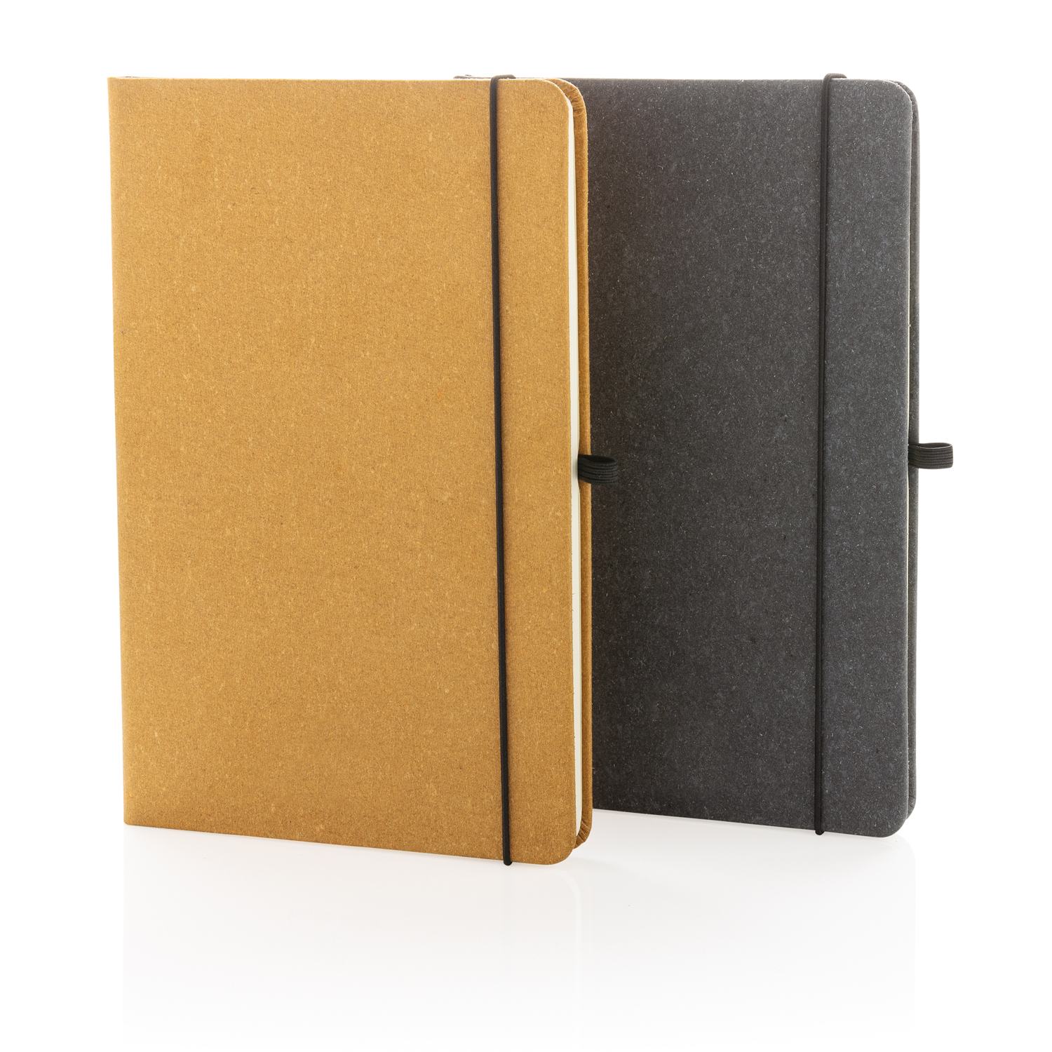 Фиксируйте все свои идеи и планы при помощи стильного блокнота формата А5, сделанного из переработанной кожи. Для записей предусмотрено 80 листов/160 страниц линованной переработанной бумаги белого цвета, плотность 70 г/м2. Закрывается при помощи резинки, есть держатель для ручки.