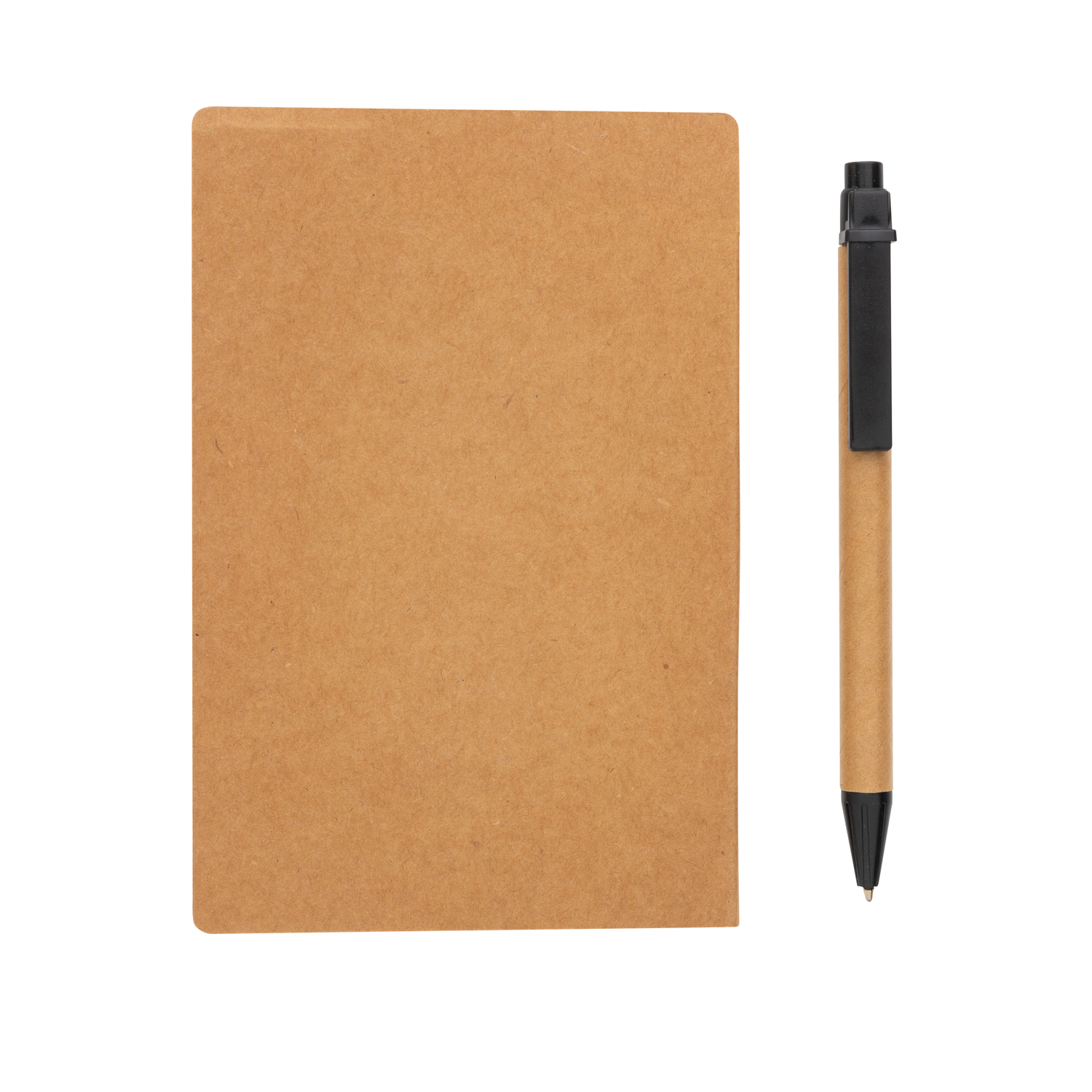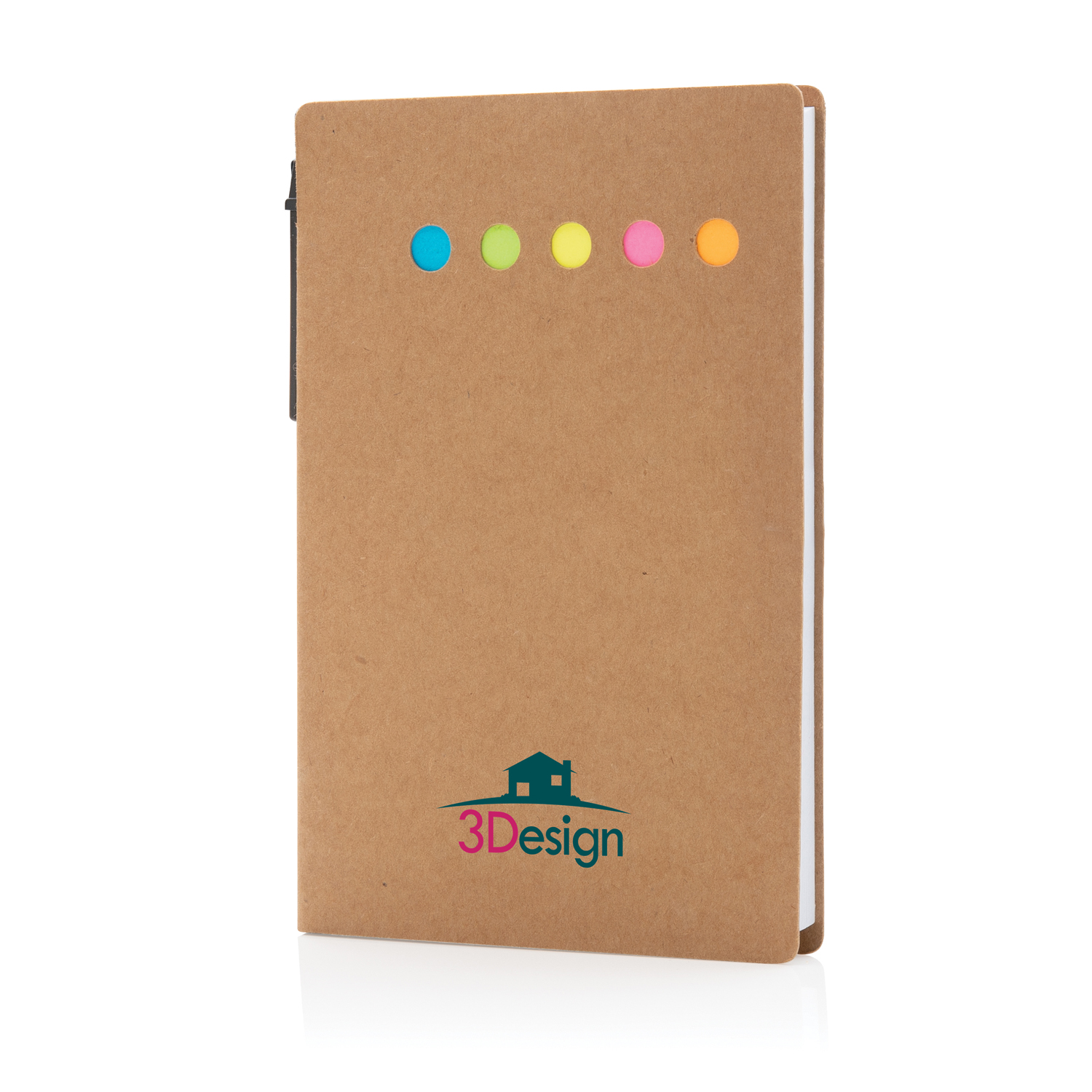 С этим компактным набором для заметок Kraft вы не забудете о важных делах. В комплект входят: плотная крафтовая обложка (350 г/м2), большой блокнот из 50 листов, средний блокнот из 25 листов с липким краем и маленькие закладки в 5 цветах (по 25 шт.), ручка с корпусом из переработанной бумаги и пластика ABS. Ручка заправлена синей пастой и способна прочертить линию до 800 м.