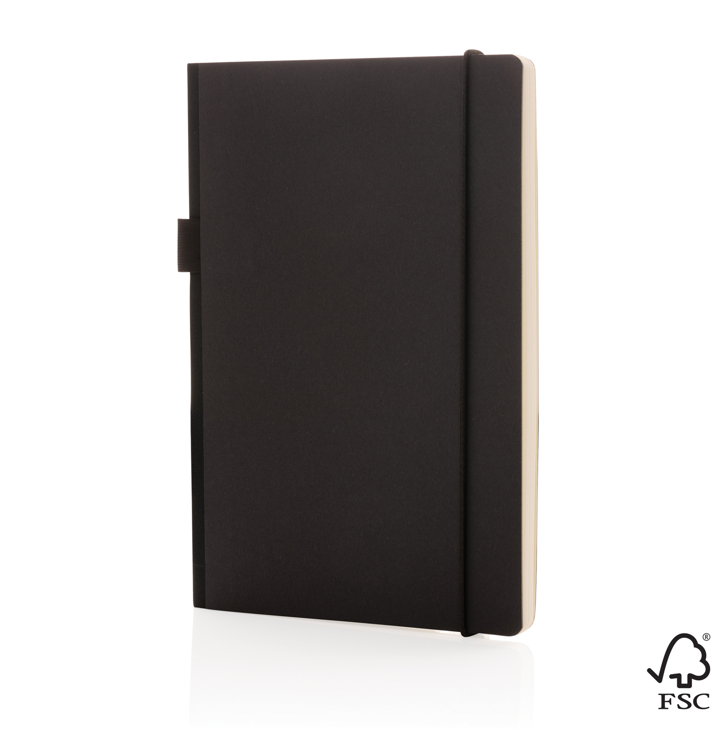 Этот блокнот в твердом переплете изготовлен из бумаги, сертифицированной FSC®. Дополнительное удобство создает эластичный держатель для ручки. Задний форзац блокнота оснащен кармашком для визиток и других мелочей. Внутри — 80 листов (160 страниц) линованной кремовой бумаги. FSC® (Forest Stewardship Council® — Лесной попечительский совет) — международная организация, создавшая систему подтверждения экологической и социальной ответственности управления лесами. Знак FSC® на товаре — показатель того, что он сделан из древесины экономически эффективного и социально ответственного лесного хозяйства.