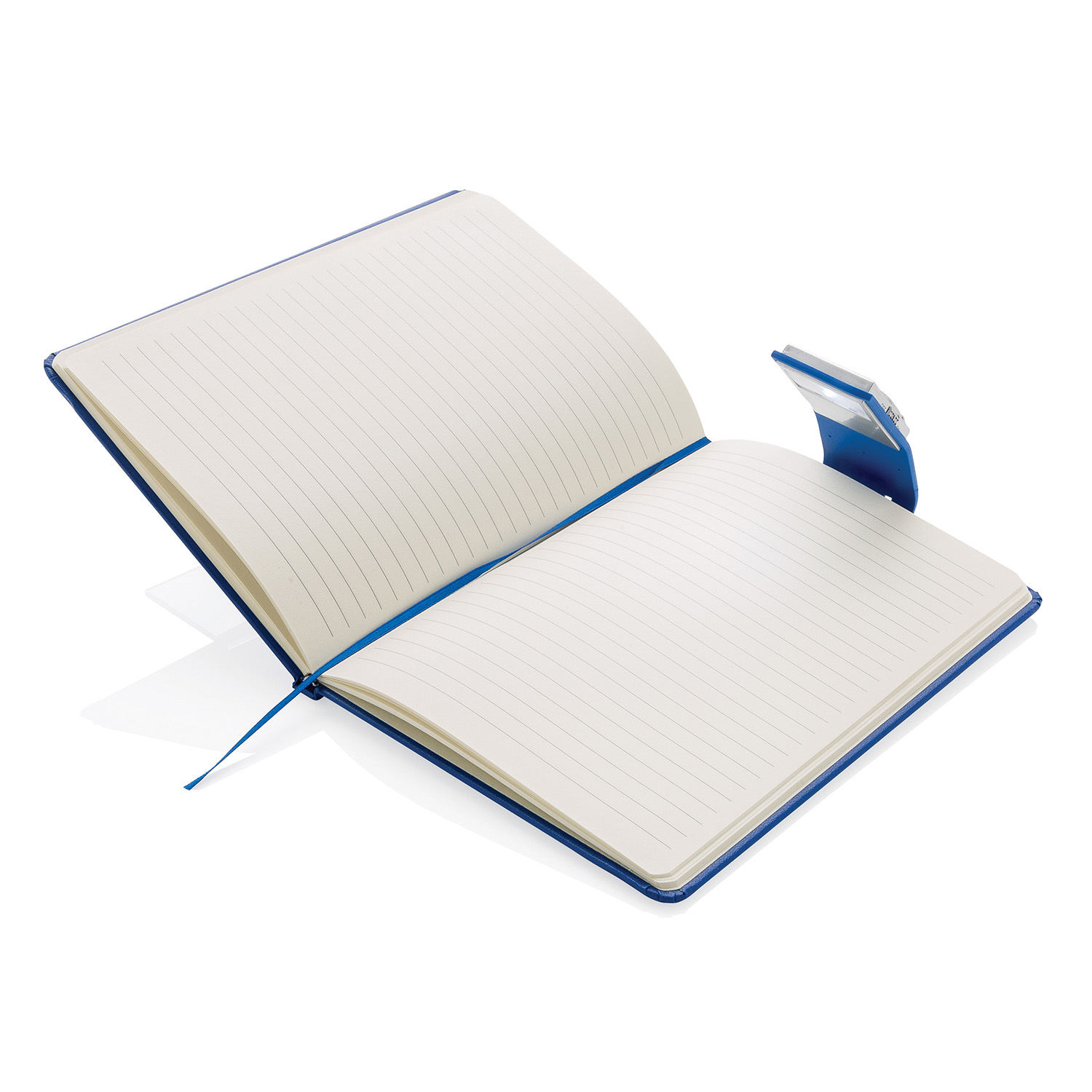 Стильный блокнот формата А5 в твердой обложке дополнен удобной закладкой с интегрированным светодиодным фонариком. 72 линованных листа изготовлены из приятной кремовой бумаги плотностью 70г/ м2.