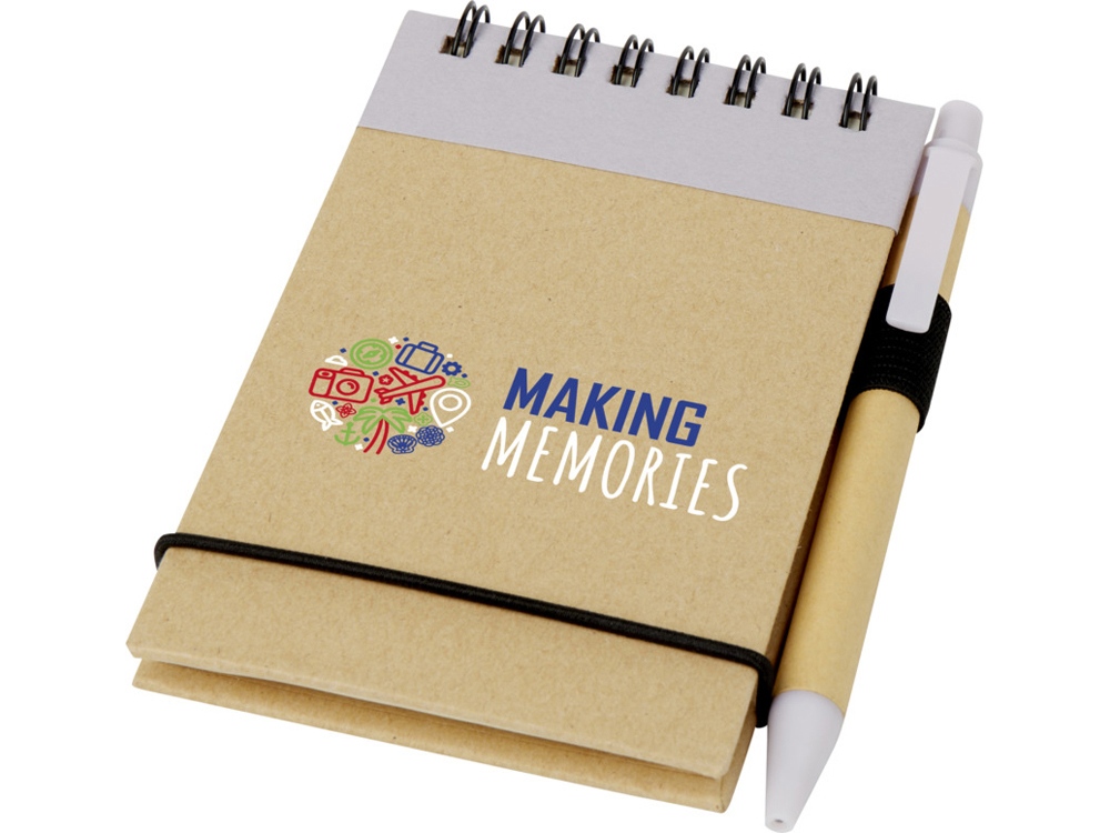 Записывать быстрые идеи легко с блокнотом Zuse recycled jotter с ручкой подходящего цвета. Маленький блокнот содержит 40 линованных листов A7 из эталонной переработанной бумаги, поэтому он хорошо помещается в любой маленькой или большой сумке, его легко держать в руках, и, кроме того, это экологичный выбор. Доступны различные варианты печати для нанесения любого логотипа на внешнюю сторону твердой обложки. Переработанная бумага.