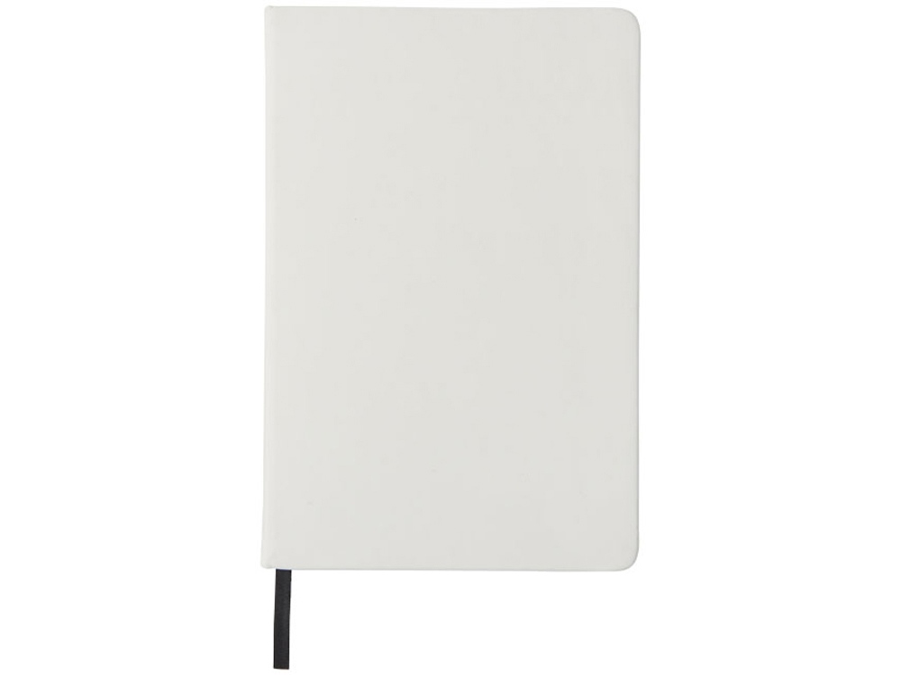 Белый блокнот A5 с цветной эластичной закладкой и резинкой. 96 страниц (60g/m2), линованная бумага. На обложке возможна цифровая печать.