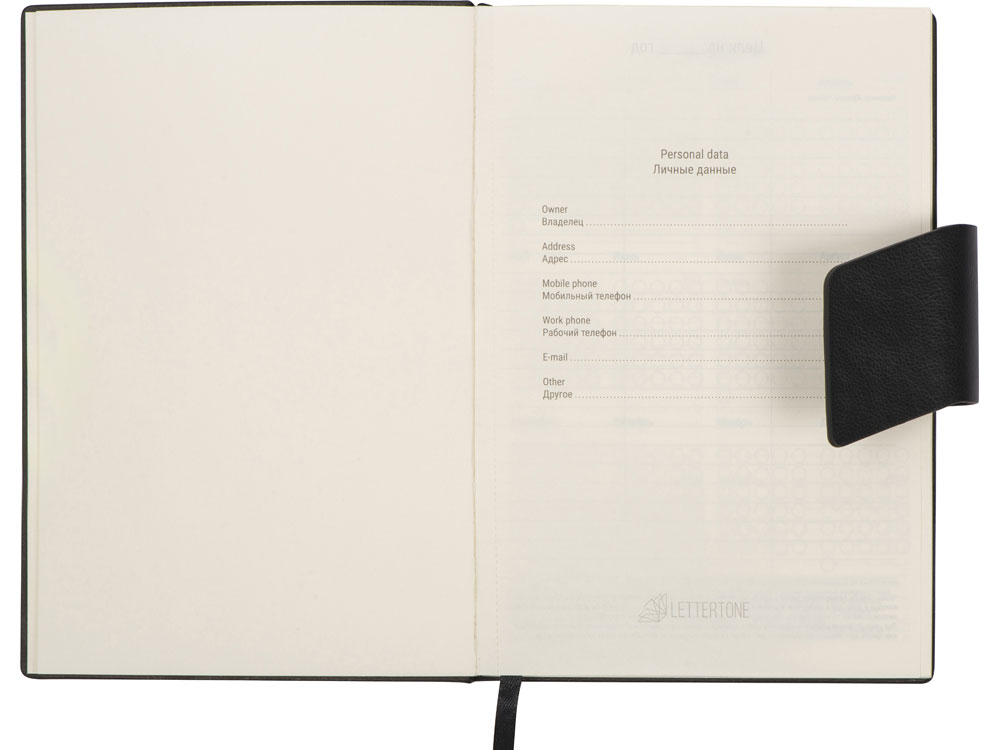 Бумажный блок выполнен из бумаги, полученной из древесины из специальных восполняемых лесных ресурсов, имеет сертификат FSC, международной некоммерческой организации лесного попечительского совета. Линовка — недатированный ежедневник, а на первых страницах вы встретите специальные листы для постановки целей на год и подведения итогов, а также другие трекеры. Отдельно отметим гладкость бумаги — писать на ней одно удовольствие.