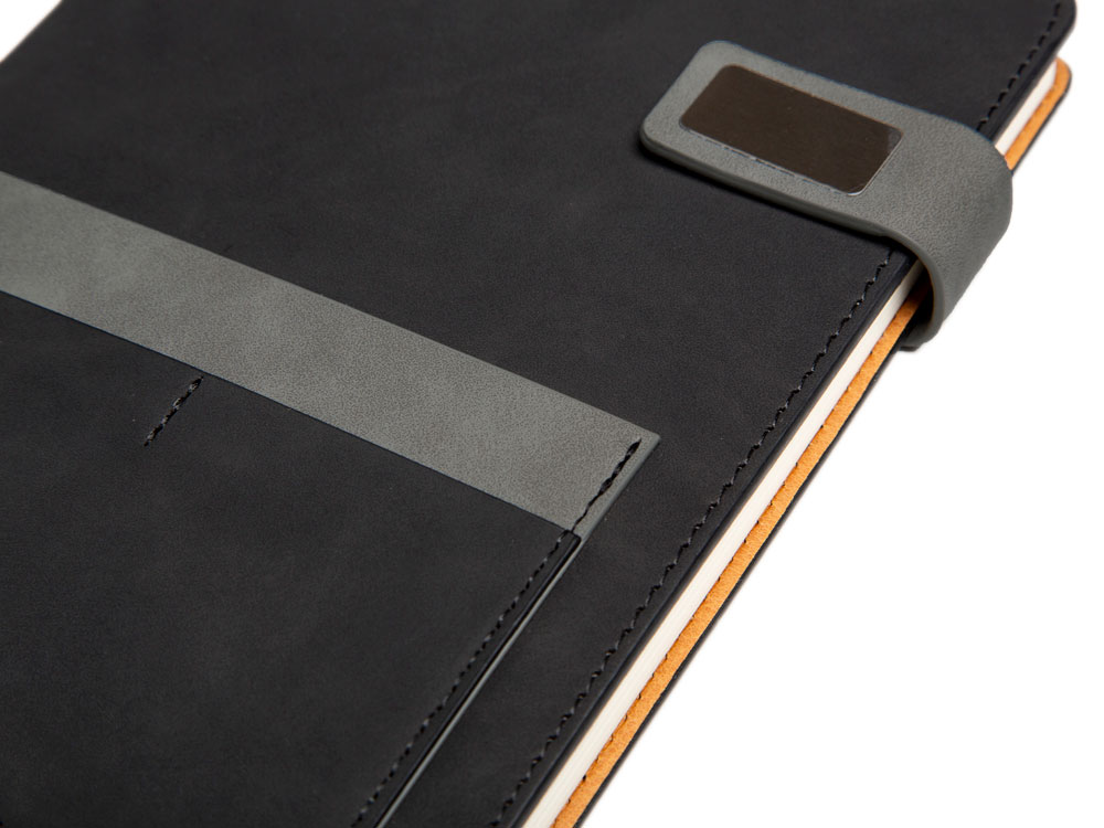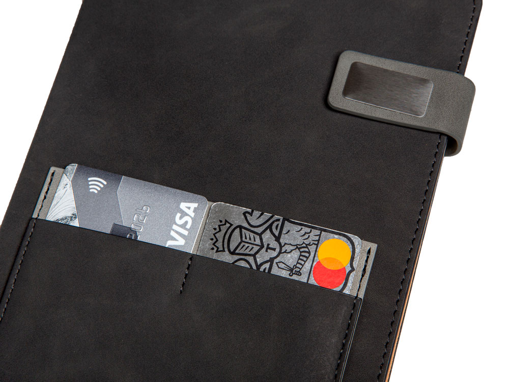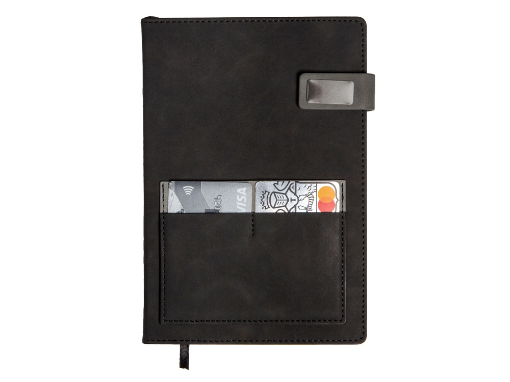 Бизнес-блокнот Freya в твердой обложке позволит вам не только навести порядок в вашем расписании и делах, но и не даст потерять важные визитки — для них прямо на обложке предусмотрен отдельный карман. Карман имеет три отделения: два под размер визиток или банковских карт и одно большего размера. Клапан позволяет сохранить блокнот в отличном состоянии в течение долгого времени даже при ежедневном использовании, не сминая листы.