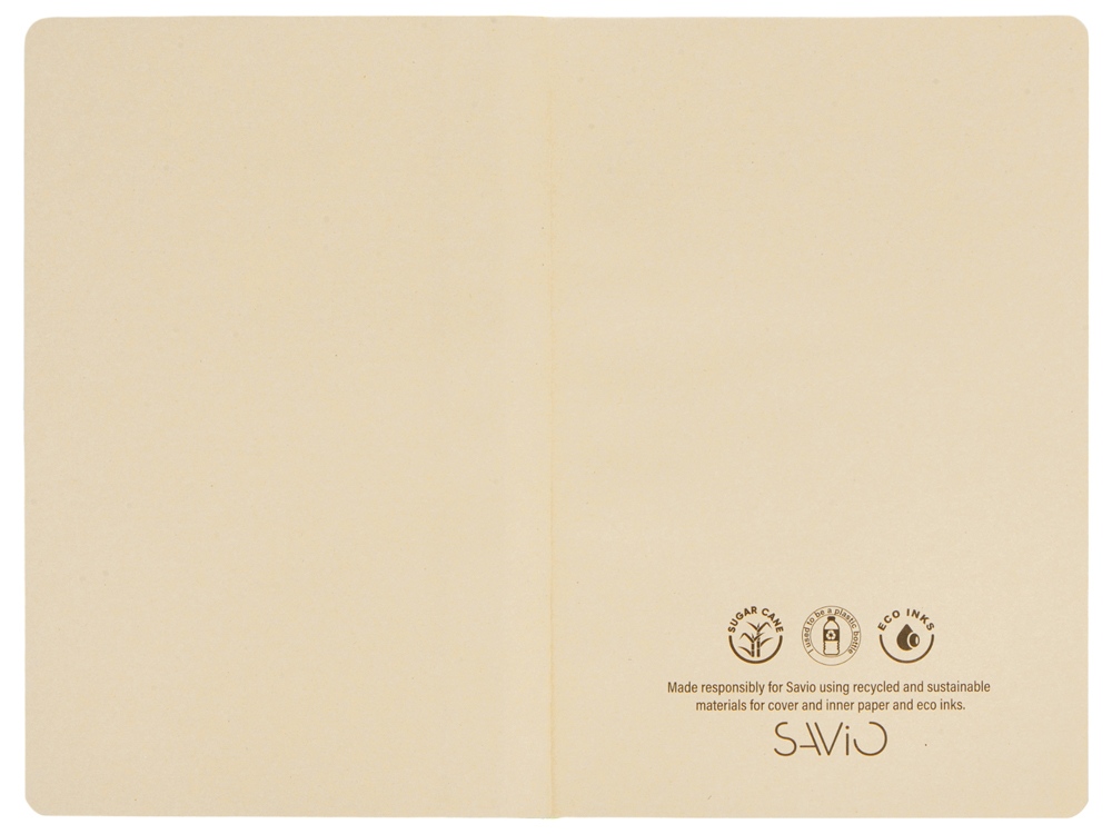 Блокнот, созданный для тех, кто заботится об экологии. Блок и обложка выполнены из переработанного сахарного тростника, а цветной корешок, который может хорошо сочетаться с логотипом, - из переработанного пластика.