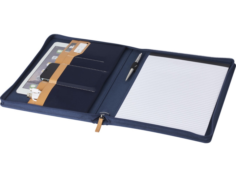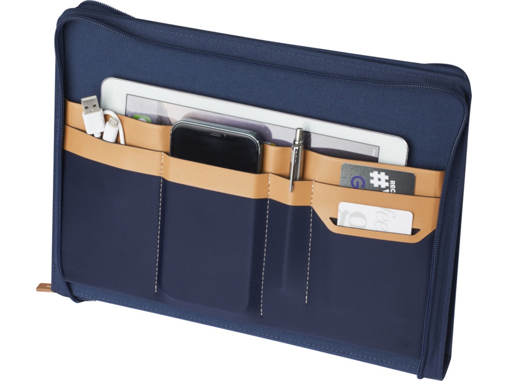 Папка- органайзер Nomumi, сертифицированная RCS, частично изготовлена из переработанного полиэстера, бывшего в употреблении, что делает данную папку более экологичным выбором, поскольку помогает сократить использование первичного сырья. Имеет застежку-молнию, петлю для ручки, карман-гармошку и 20 белых листов в линейку из переработанной бумаги плотностью 70 г/м² из экологически чистых источников. Ручка и другие аксессуары, представленные на фотографиях, в комплект поставки не входят. FSC certified paper. FSC Mix Credit P7 CU-COC-877277.