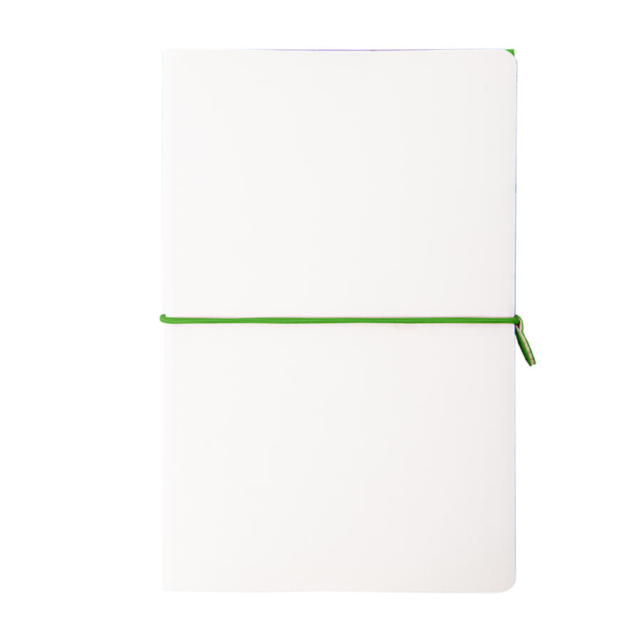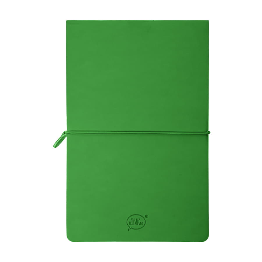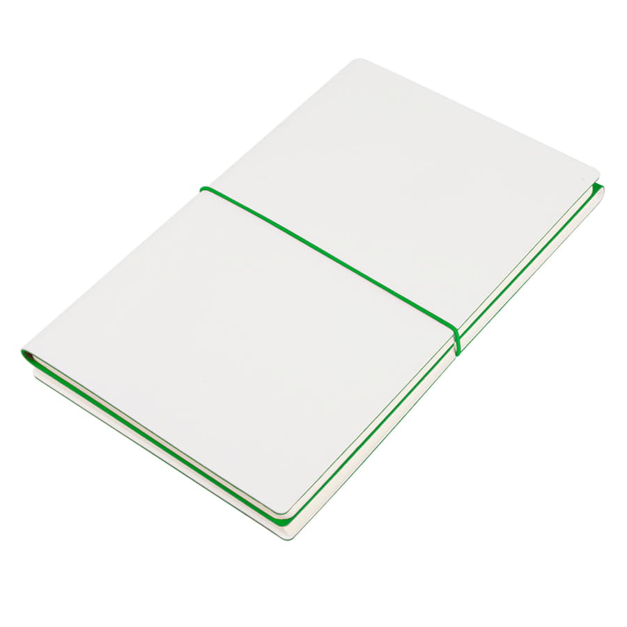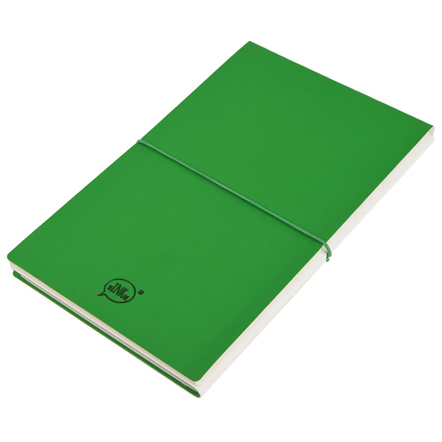 с оборотной стороны - яркий PU Silk Plus (цвет, близкий к pantone 355C). - два разных внутренних блока по 96 страниц соединены под одной обложкой: