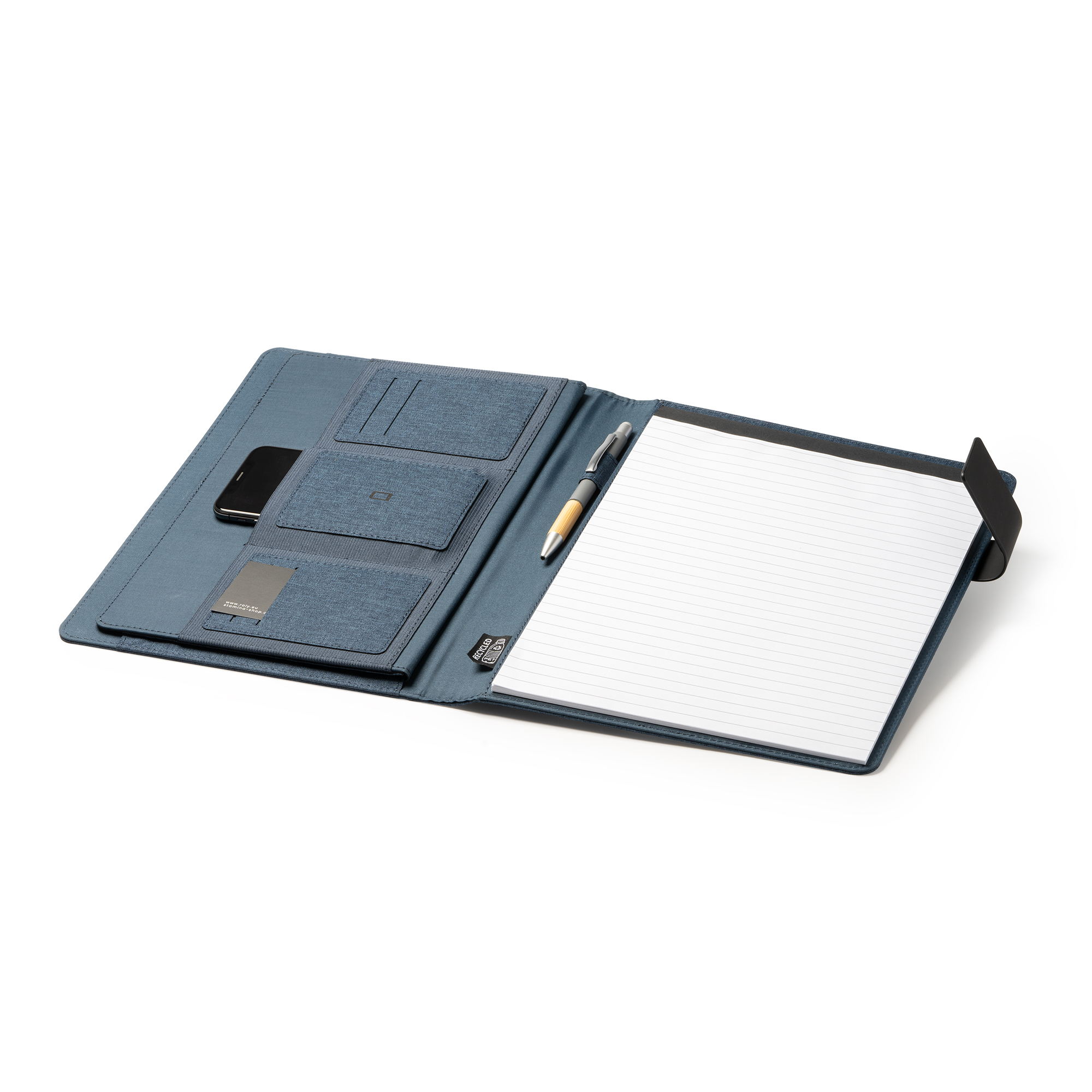 Универсальная папка А4 изготовлена из переработанного пластика и оснащена магнитной застежкой. В комплект входит съемный блокнот на 30 листов с подкладкой, обеспечивающий удобство записи. Папка также имеет 4 внутренних кармана для хранения документов и аксессуаров, а также держатель для ручек, что делает ее функциональным и экологичным выбором для офиса или учебы.
