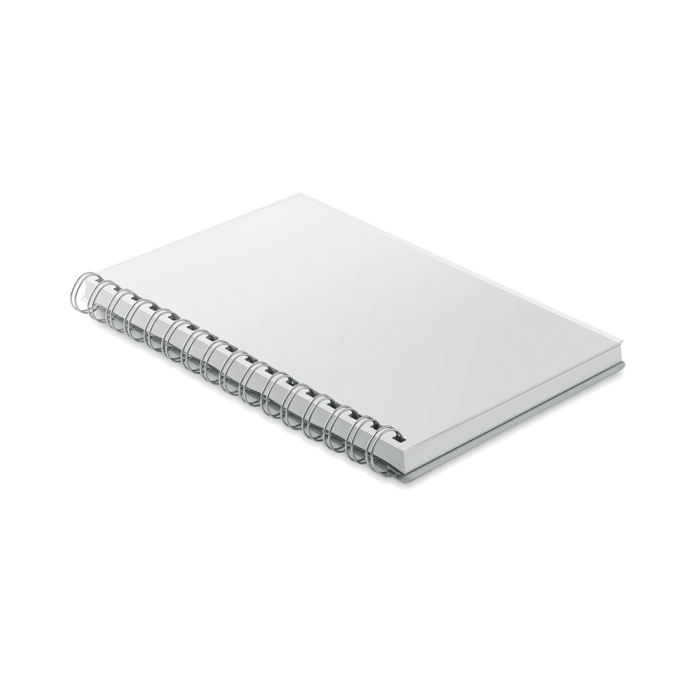 Блокнот формата A5 на спирали в обложке из переработанного пластика (RPET). 80 линованных страниц.