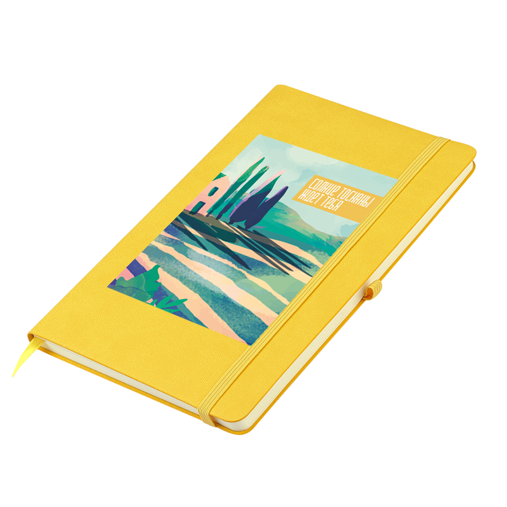 Блокнот формата А5 с мягким покрытием из PU-материала с имитацией рисунка кожи, с эластичной застежкой и текстильной закладкой, наличие петли для ручки в цвет блокнота, 192 страницы, плотность 70г/м, страницы с черными линиями. Цвет по PANTONE® (максимально приближен): 4154C.