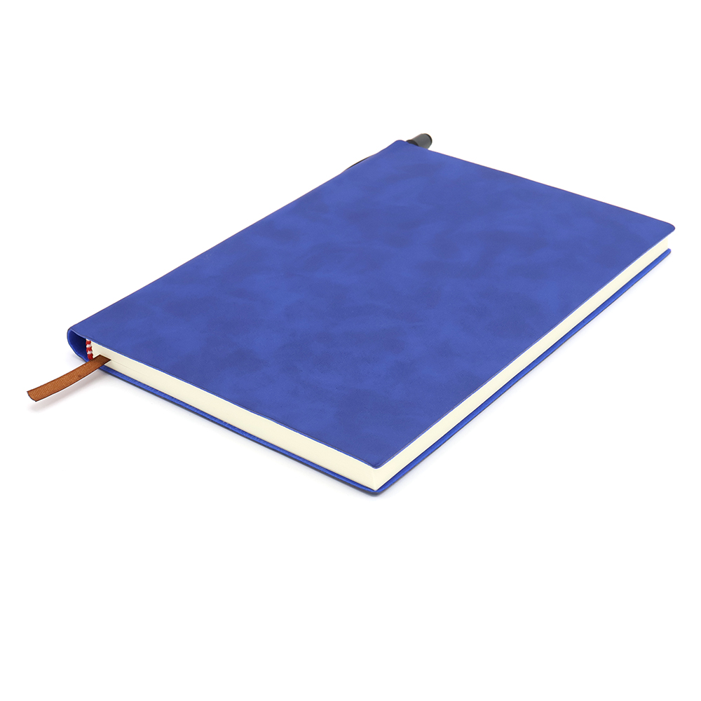 Блокнот формата А5 в мягкой обложке из искусственной кожи. Материал обложки — полиуретан. Текстура — гладкая с эмитацией натуральной кожи. Для удобства переноски ручки в корешке блокнота присутствует ниша, к которой ручка крепится за клип.