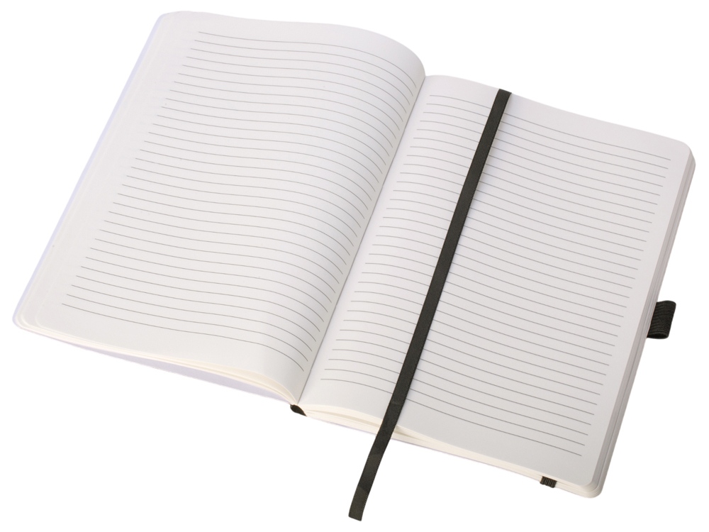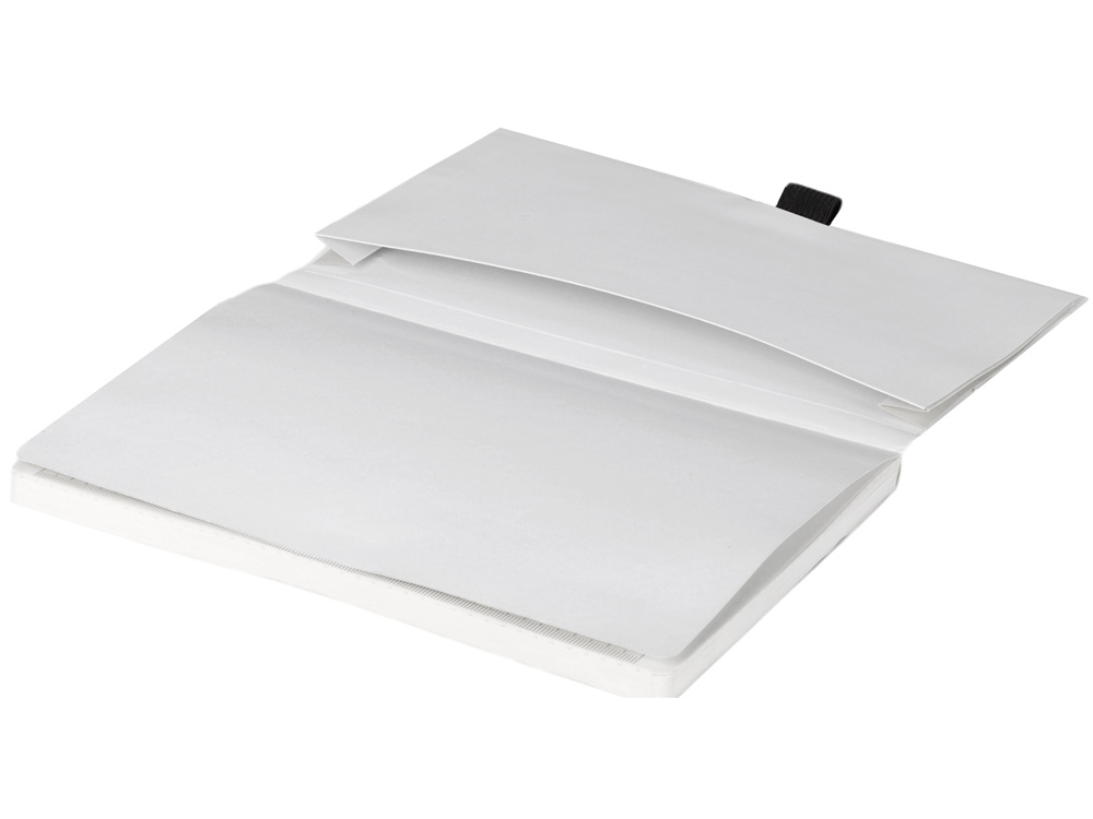 Также блокнот снабжен резинкой и петлей для ручки. Упаковка — конверт из нетканого материала с логотипом.
