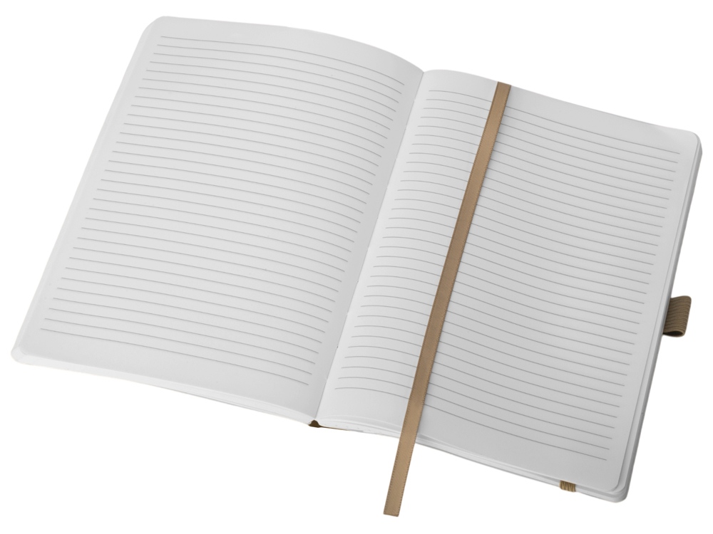 Также блокнот снабжен резинкой и петлей для ручки. Упаковка — конверт из нетканого материала с логотипом.
