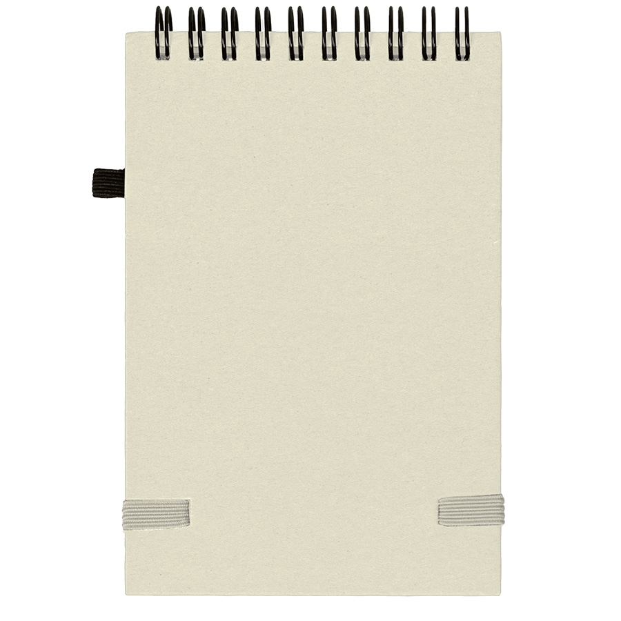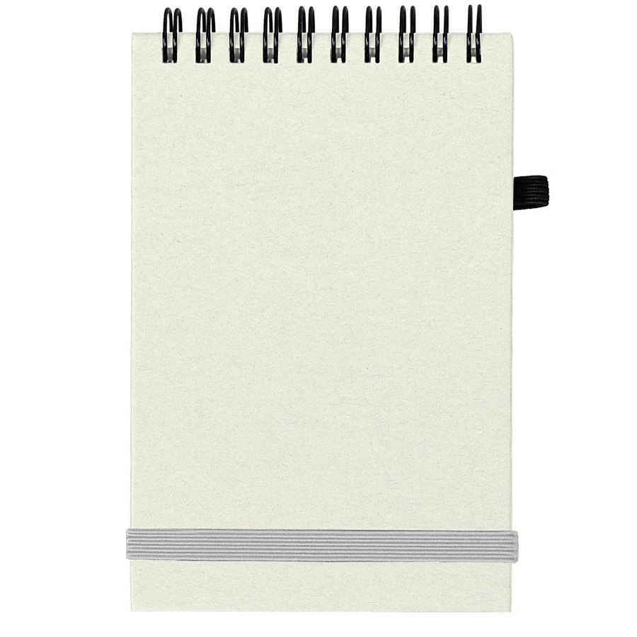 Блокнот на спирали MEMO, размер 95*145 мм, обложка твердая, переработанное натуральное волокно, 60 листов из переработанной бумаги, 80 г/м2. Резинка-пенхолдер и резинка для фиксации.Ручка в комплект не входит