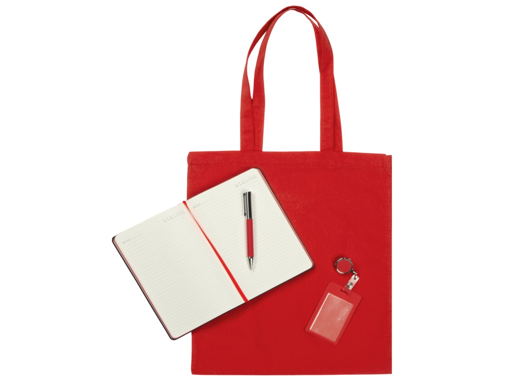 Отличный набор для нового сотрудника, в который входит все самое необходимое для комфортной адаптации в новой компании: блокнот, ручка, чехол для пропуска с ретрактором и шоппер.
