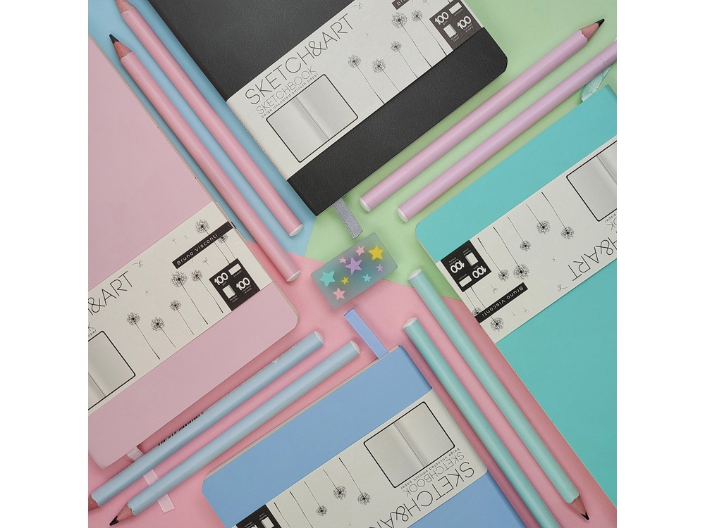 Скетчбук SKETCH&ART на 100 листов в книжном переплете от Bruno Visconti – это функциональный блокнот для зарисовок. Гибкая обложка из искусственной кожи с великолепным качеством отделки и скругленными углами – образец стиля и элегантности, комфорта и практичности. Скетчбук сохраняет первоначальный внешний вид даже при активном использовании и дарит приятные тактильные ощущения благодаря бархатистому покрытию Soft Touch. Формат А5 позволяет брать скетчбук в дорогу, он легко помещается в дамскую сумочку, а значит всегда будет у вас под рукой. Листы блока плотностью 100 г/кв.м, бежевого цвета - приятный и выгодный фон для создания эскизов и зарисовок цветными и чернографитными карандашами, ручками, линерами. Художественно оформленные форзац и нахзац с выделенным полем для персональных данных - дополнительное преимущество скетчбука.
