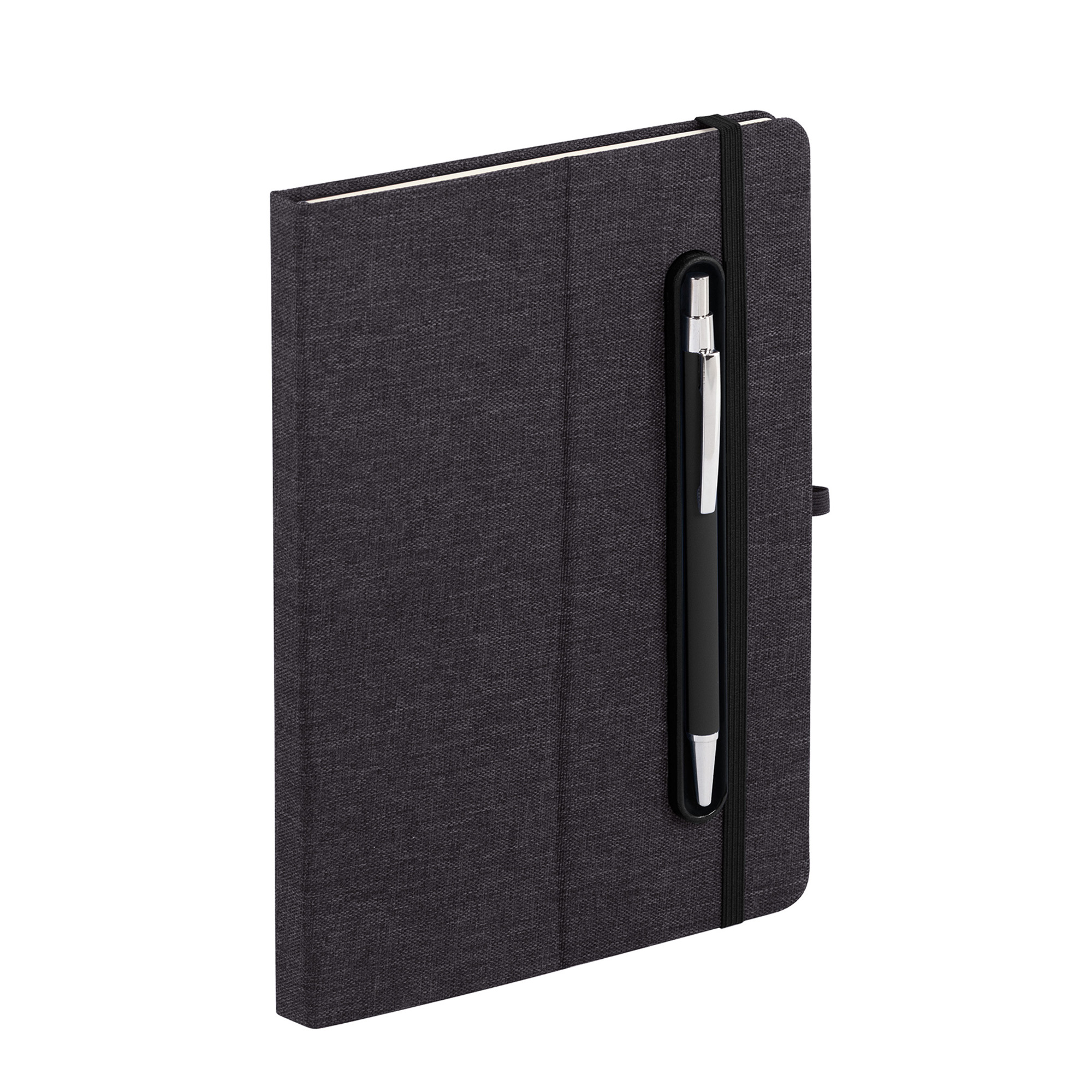 - Блокнот формата А5 с резинкой-фиксатором и встроенным в обложку магнитным держателем для ручки. Внутренний блок состоит из 160 страниц в линейку бумаги плотностью 70 г/м2. Материал обложки изготовлен из переработанного (RPET) пластика. Магниты прочно и надёжно закрепляют металлическую ручку на обложке. Бонус – обложка трансформируется в удобную подставку для смартфона/планшета/ноутбука;