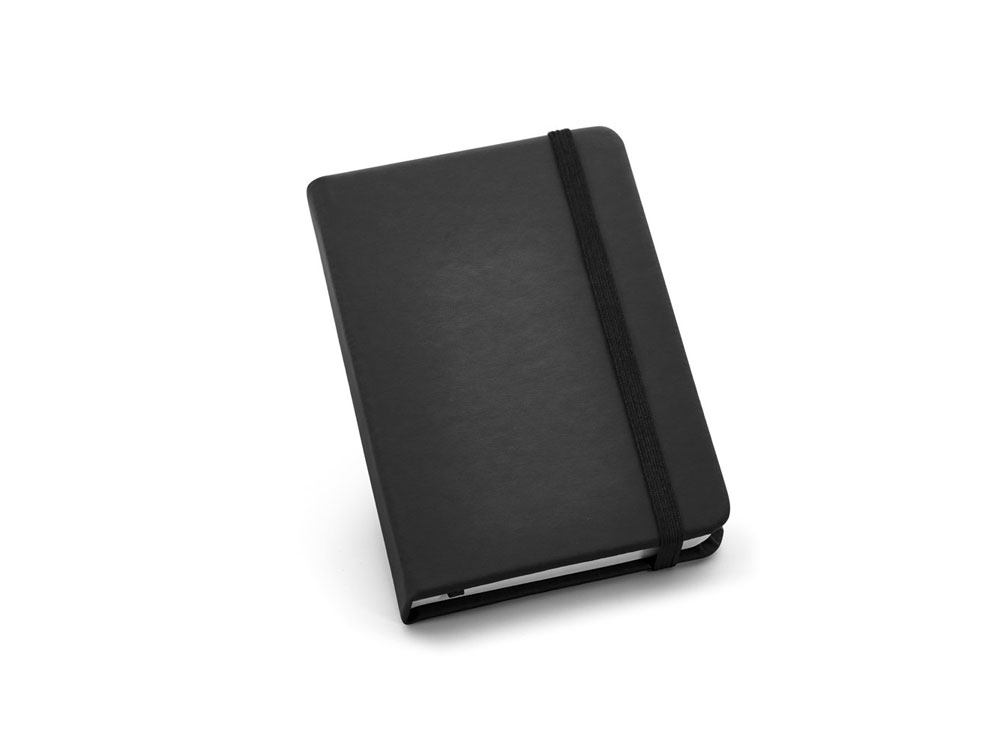 Карманный блокнот на 160 страниц в линейку с твердой обложкой из искусственной кожи, с разделительной лентой и резинкой. 90 x 140 мм