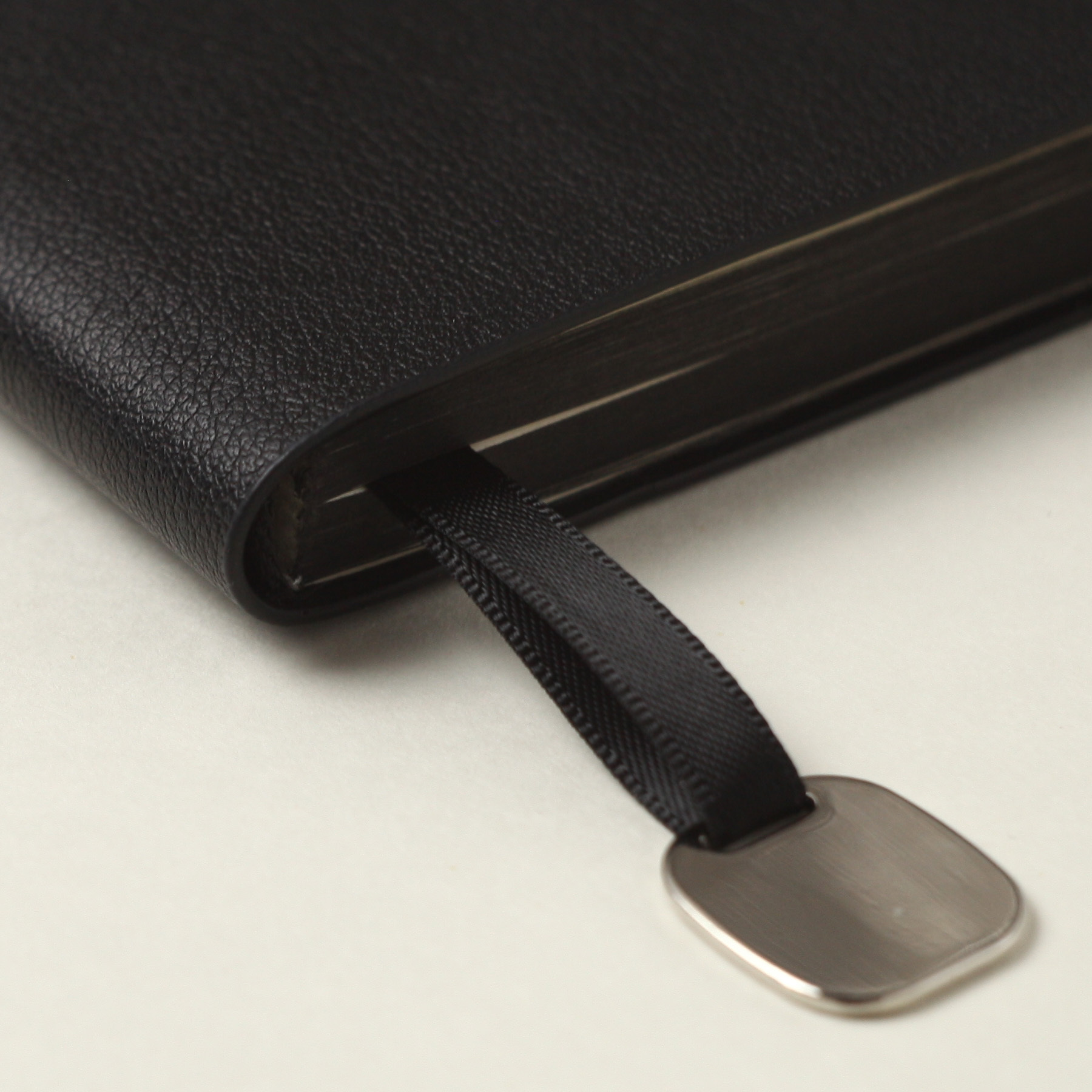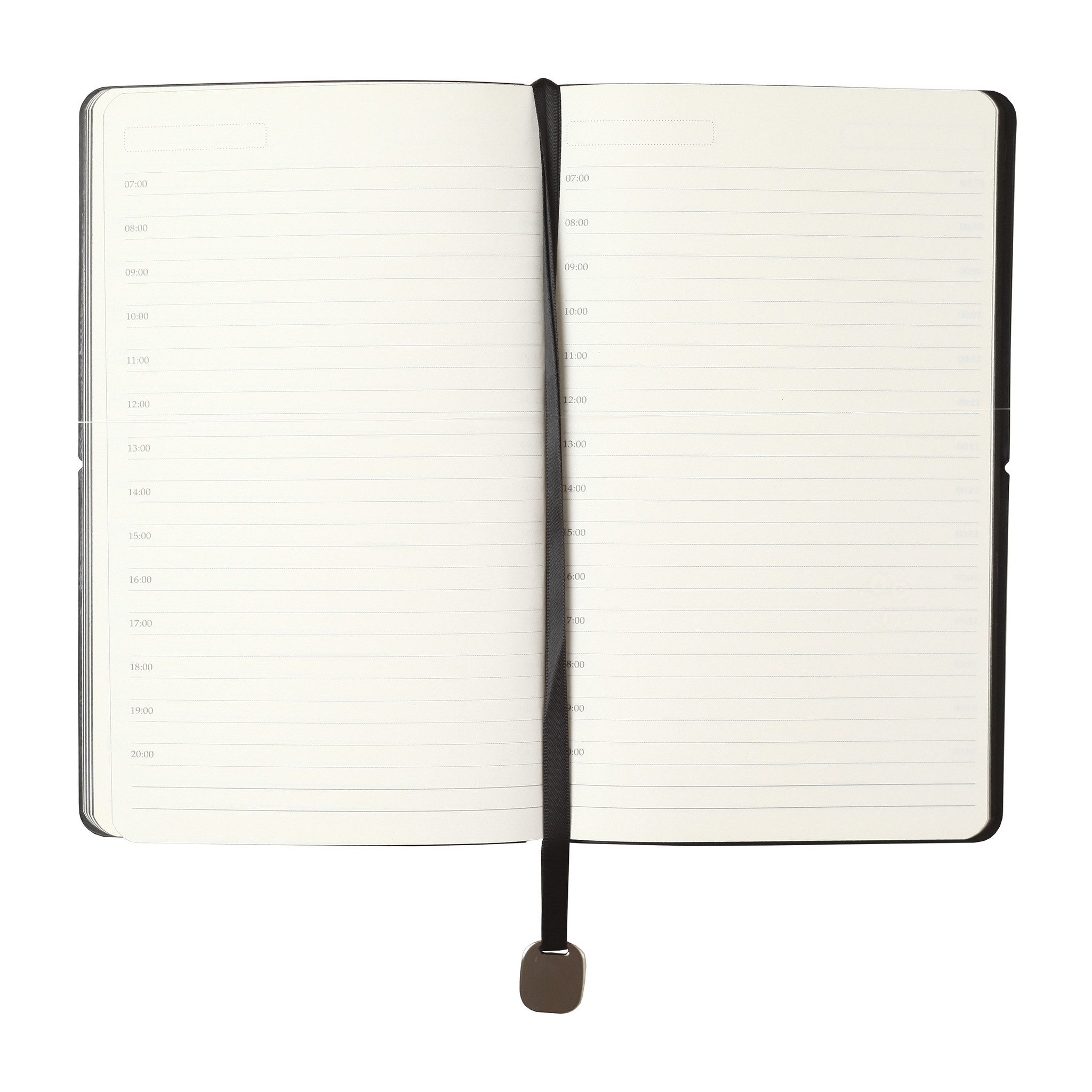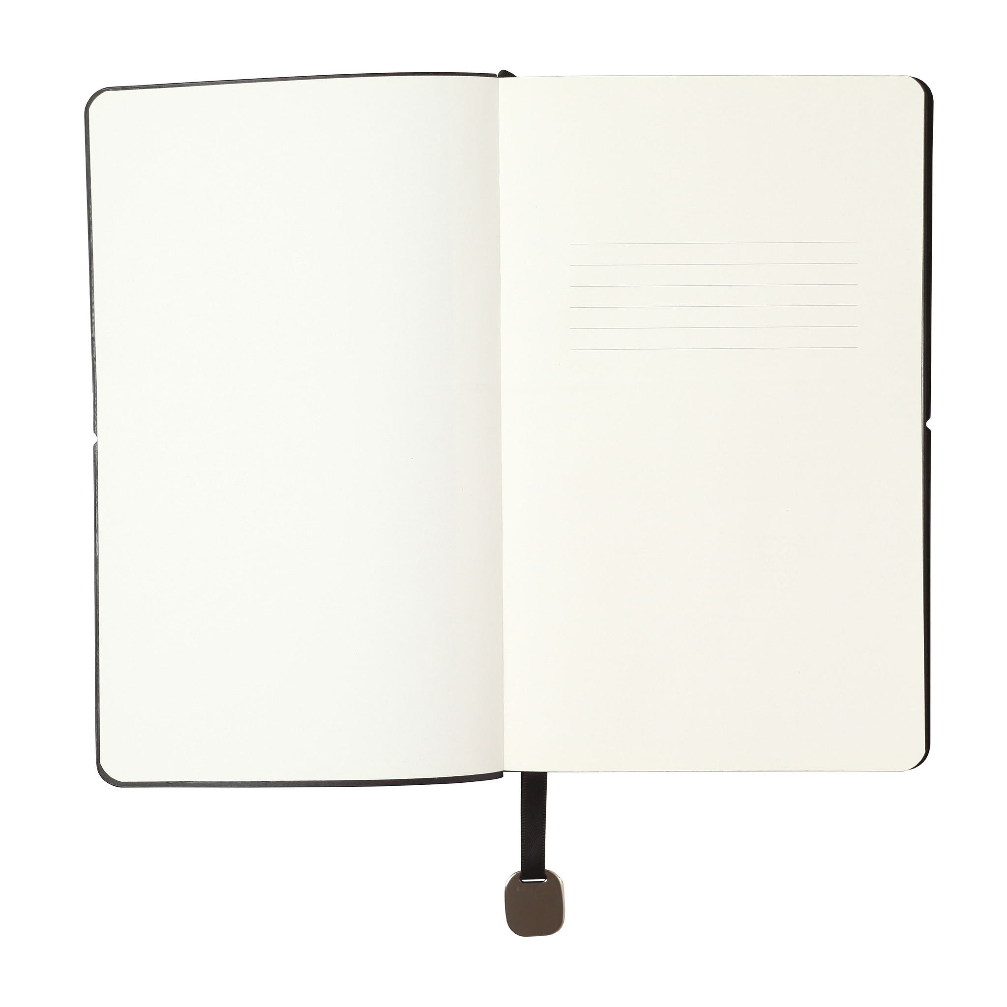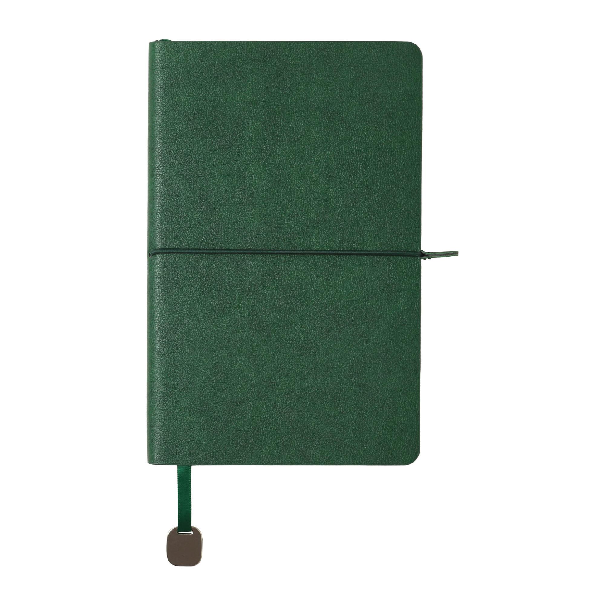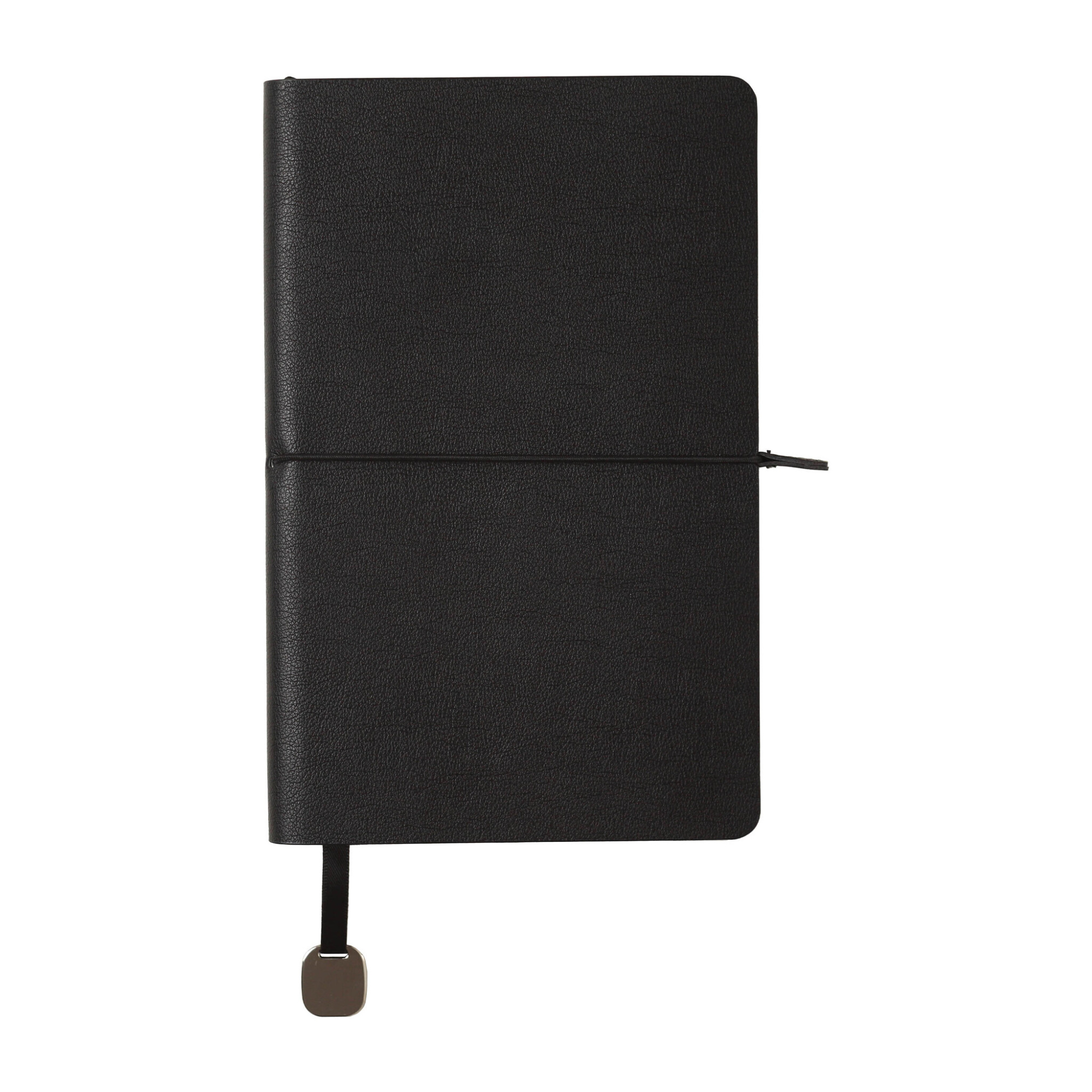 Формат А5; Блок недатированный, в линейку, скругленные углы; Материал: Переплет гибкий; Резинка горизонтальная; Ляссе в цвет обложки; Ляссе двойное, с глянцевым металлическим шильдом; Бумага кремовая; Форзац/нахзац кремовые.
