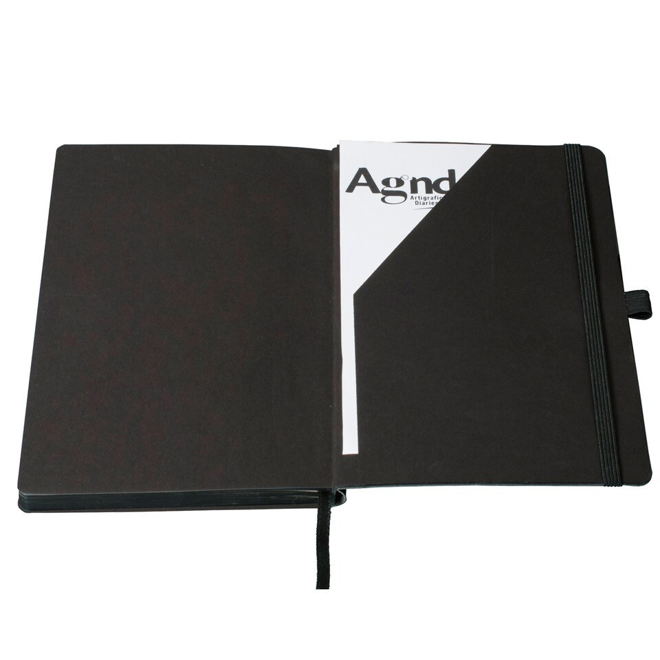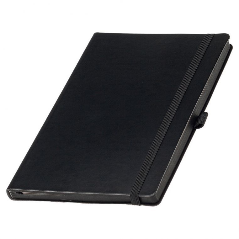 Ляссе, резинка, петля для ручки и цветной срез блока в тон обложки. Задний карман в тон нахзаца.