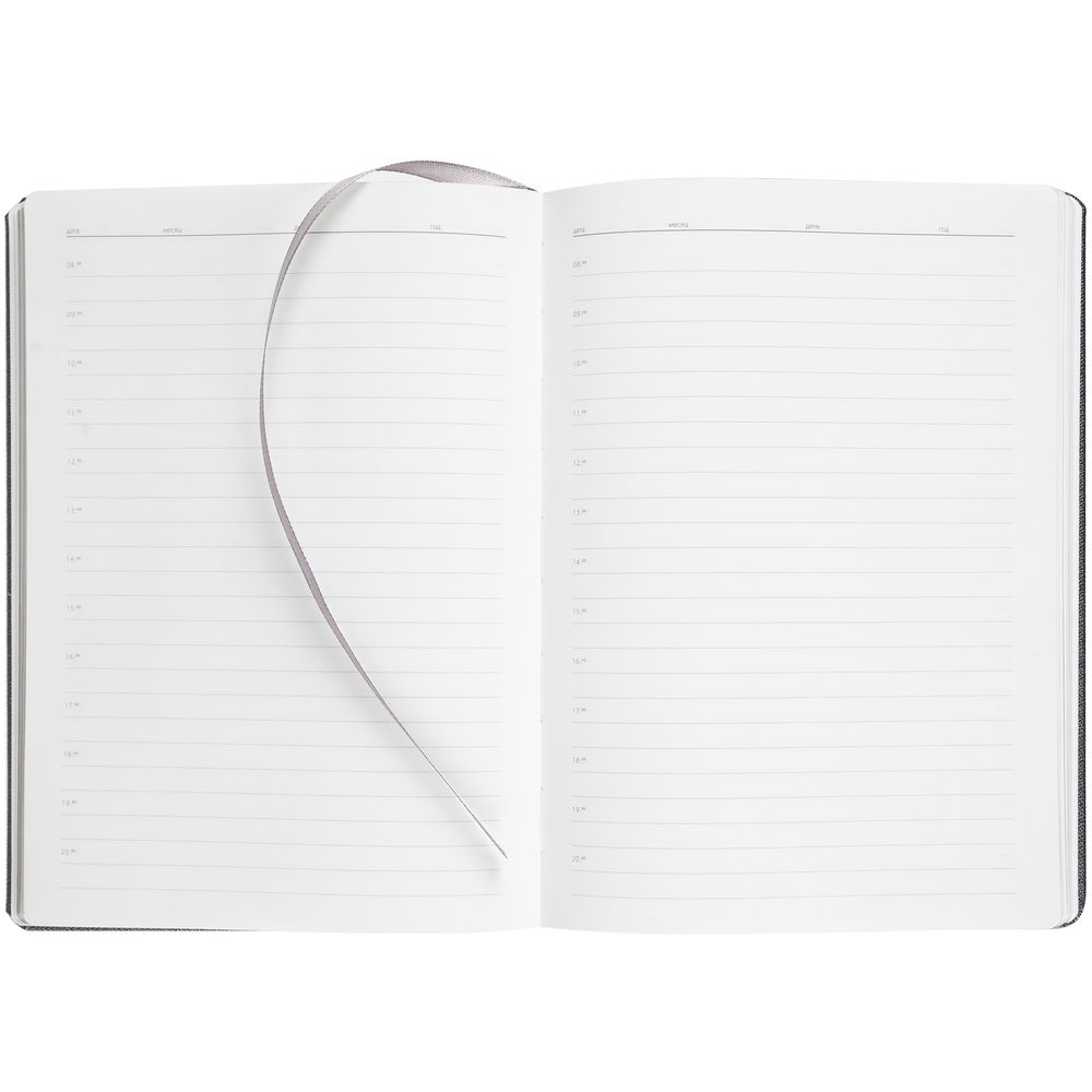 Ежедневник в обложке из плотного фактурного материала c четким геометрическим рисунком и металлическим блеском.