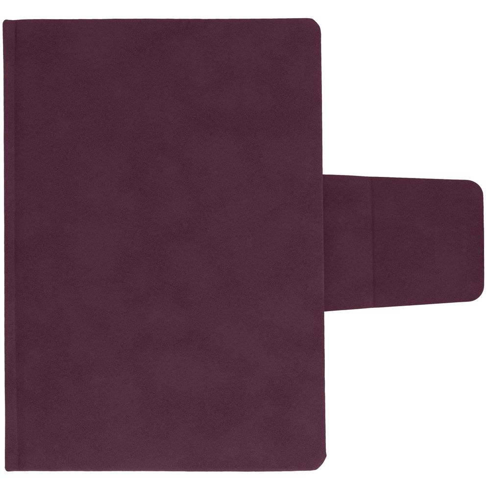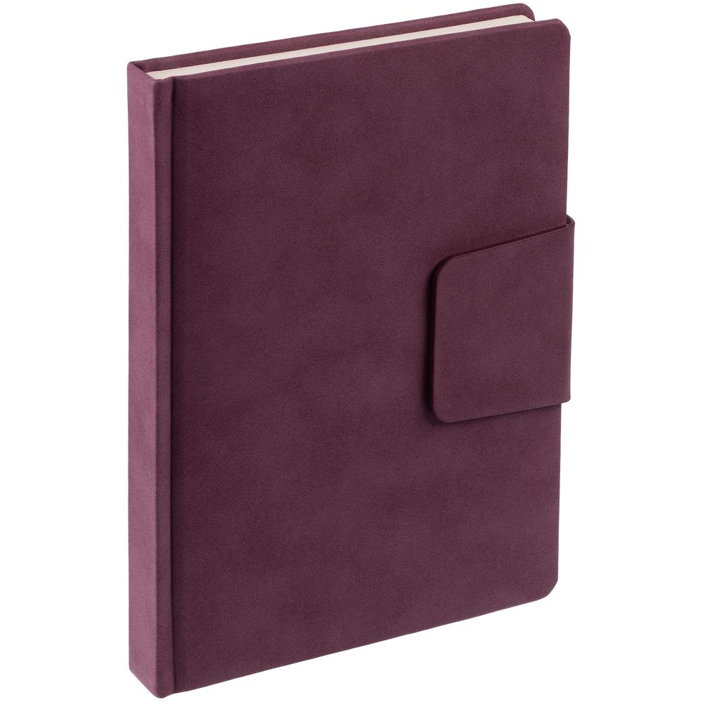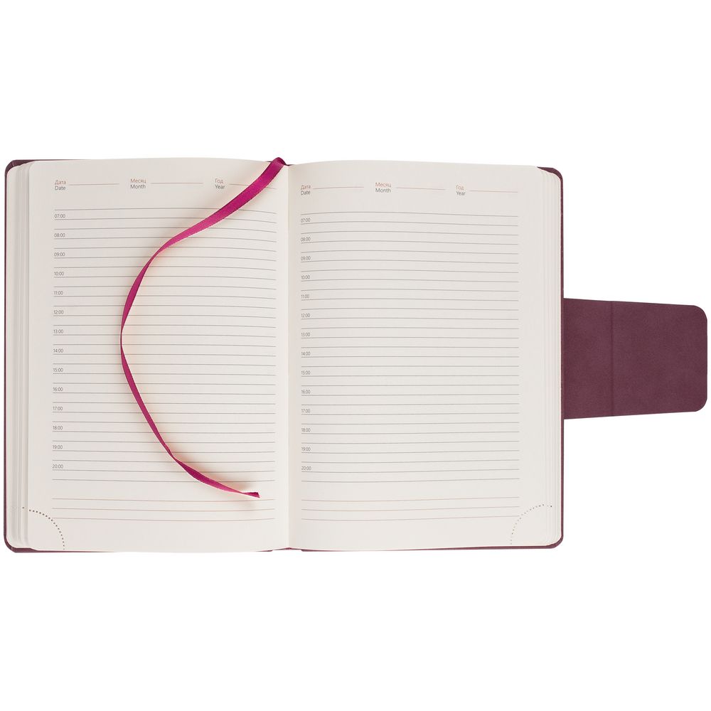 Ежедневник с твердой обложкой c поролоном, выполнен из материала Nubuck, красный РР, дополнен капталом и ляссе в цвет обложки. Застежка — хлястик на магните.
