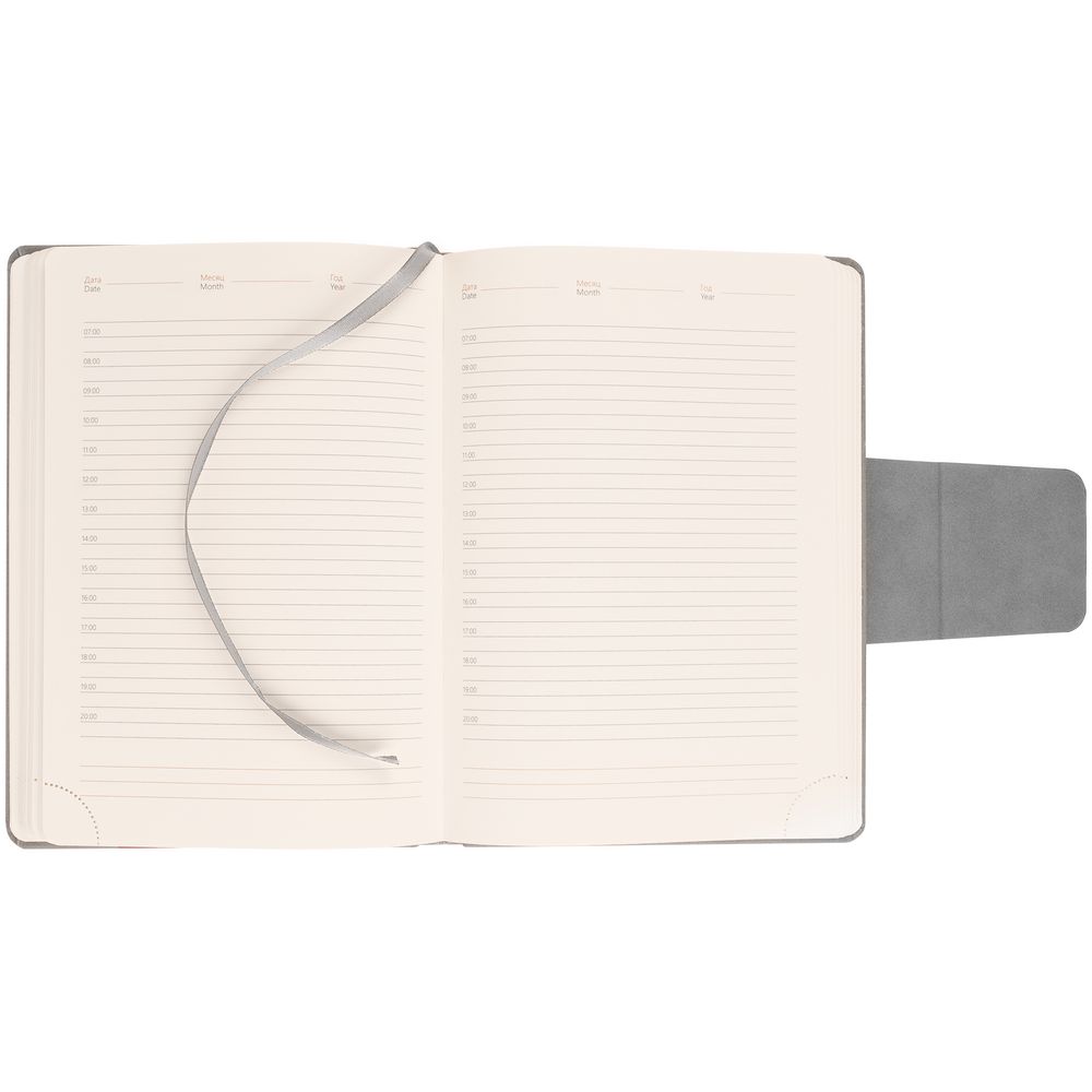 Ежедневник с твердой обложкой c поролоном, выполнен из материала Nubuck, красный РР, дополнен капталом и ляссе в цвет обложки. Застежка — хлястик на магните.