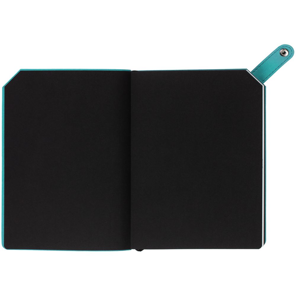 Ежедневник с гибкой обложкой и тонированным обрезом. Выполнен из материала Latte, морская волна II, дополнен черным ляссе.