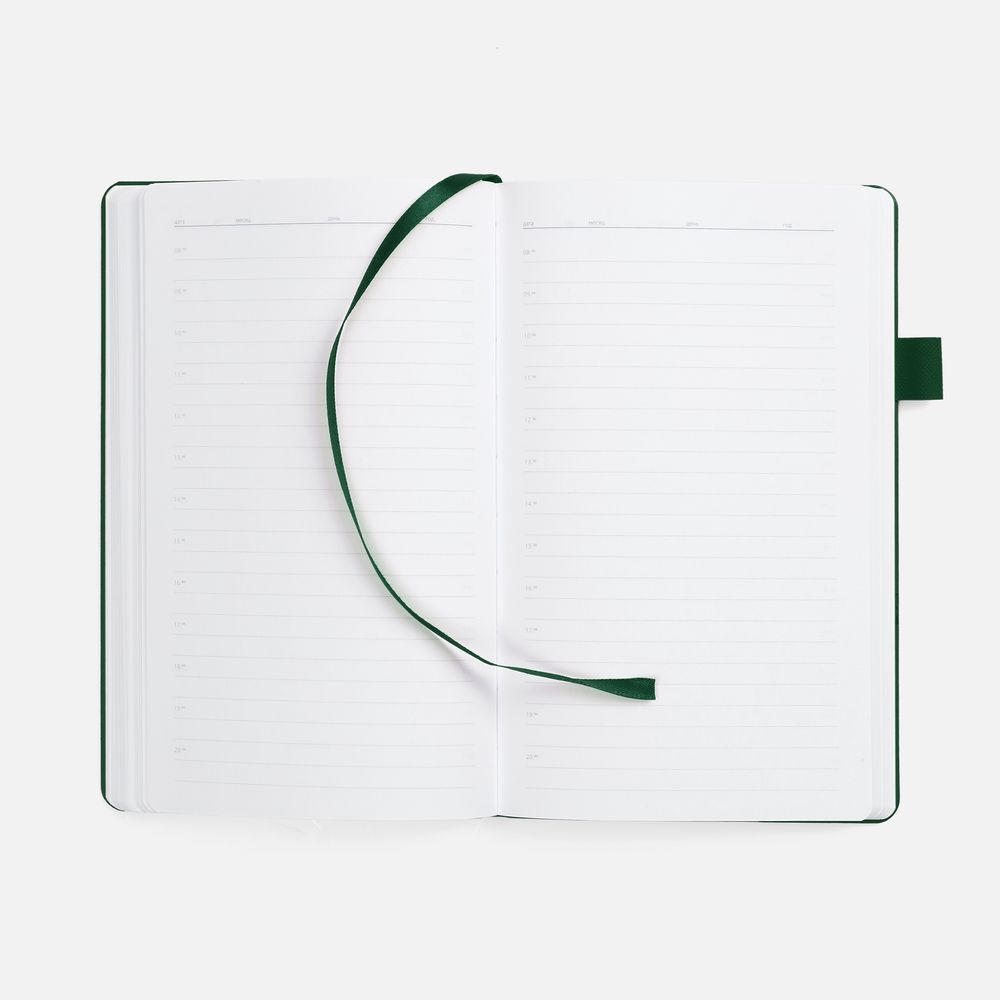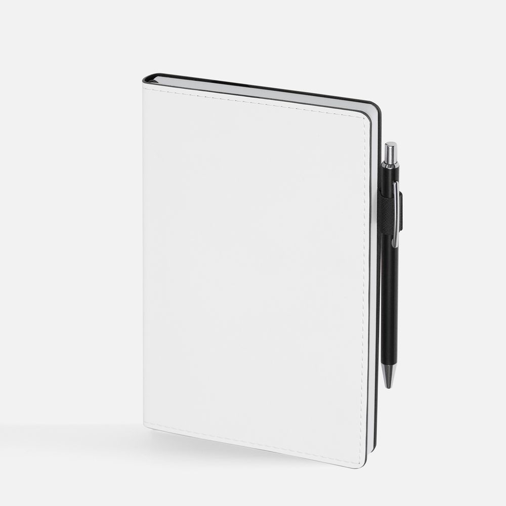 Гибкая обложка, материал обложки — Soft Touch, белый BB и Latte, цвета морской волны II; материал петли для ручки — Nice Touch, цвета морской волны II. Срез обложки окрашен в цвет морской волны.