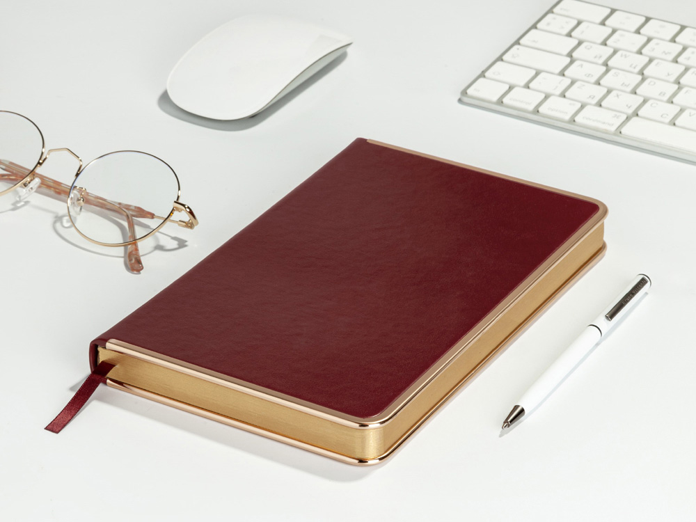 Недатированный ежедневник Chelsea от бренда Bruno Visconti - это качественный корпоративный подарок по выгодной цене, произведенный специально под персонализацию. Представлен в универсальном формате А5. Деловой аксессуар, напоминающий об эпохе расцвета Голливуда, в элегантной неповторимой манере преподносит привычные классические формы. Твердая обложка оформлена металлическим кантом по всему периметру. С ним хорошо сочетается металлизированный обрез.