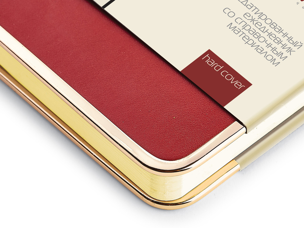 В ежедневнике Chelsea есть полезная справочная информация и телефонная книга, а также 272 страницы для записи идей, мыслей и составления рабочих планов. Есть закладка - тесьма из шелка, она интегрирована в обложку и может использоваться как хлястик. Для изготовления страниц используется качественный бежевый офсет повышенной плотности (70 г/кв м), которая производится в Японии и подходит для всех видов чернил. Бордовое ляссе, совпадающее по цвету с капталом, служит для удобного перехода к текущей дате.