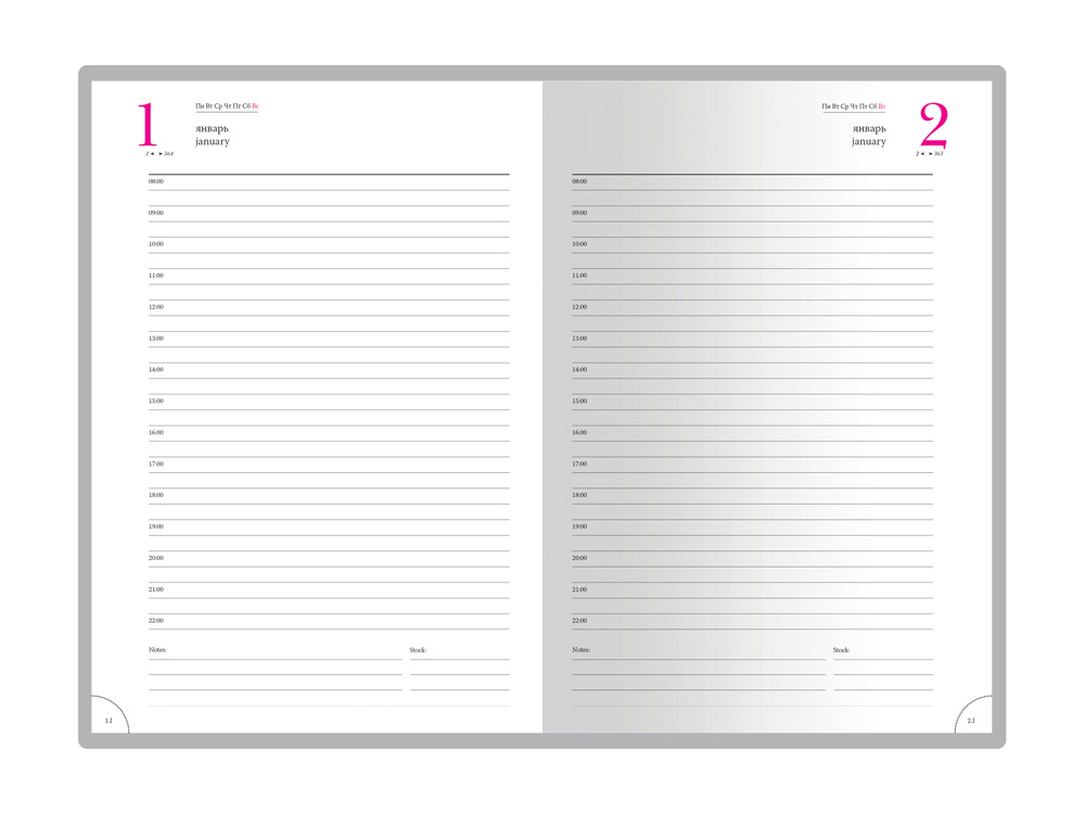 В ежедневнике есть полезная справочная информация и телефонная книга, а также страницы для записи идей, мыслей и составления рабочих планов. Есть перфорация (нижние уголки отрывные). Для изготовления страниц используется качественный бежевый офсет повышенной плотности (80 г/кв м), которая производится японской фирмой Daiwa и подходит для всех видов чернил.