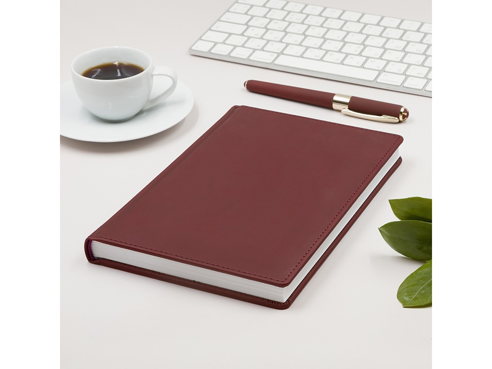 Ежедневник датированный на 2026 год. Его обложка со скруглёнными уголками и с отстрочкой по периметру в цвет выполнена из искусственной кожи нежной и приятной на ощупь.