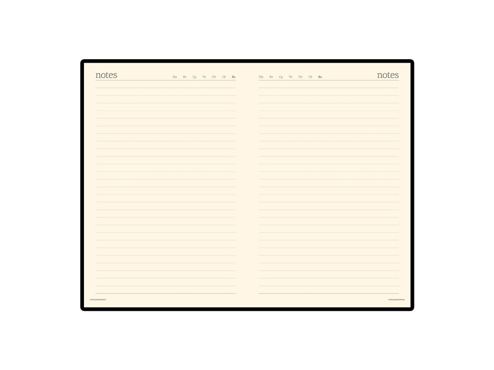 Ежедневник выпускается в универсальном формате А5. Размер обложки – 144*215 мм. В недатированном блоке для записей 320 страниц из тонированной бумаги бежевого цвета. Бумага плотностью 70 грамм.