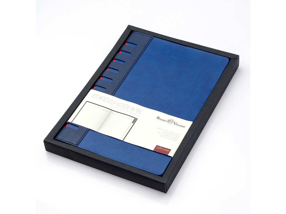 Оригинальная модель ежедневника с необычным накладным корешком с вырубкой и контрастной подложкой. Обложка готова к персонализации и выполнена из гибкого материала.