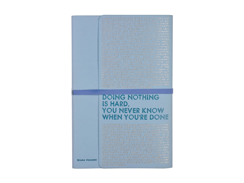 Так трудно ничего не делать, ведь совершенно непонятно, когда ты закончишь! Лаконичный слоган мотивирует к активным действиям. Планируй и завершай! Вот что кроется в элегантной надписи, выполненной золотым тиснением! А Flex обложка напоминает Будь гибким! Великолепный недатированный ежедневник Bilbao черно-синего цвета с тиснением фольгой. Бежевая бумага 65 г/м, широкая горизонтальная фиксирующая резинка. Гибкая обложка с покрытием Soft-touch. Особенность этого ежедневника - часть обложки внахлест может использоваться как закладка. Ежедневник упакован в картонный полукороб и термопленку.