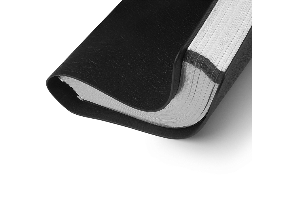Гибкая (flex) обложка из фактурной высококачественной экокожи, скругленный угол обложки и блока, полускрытый гребень, позволяющий держать ежедневник открытым на столе и работать с комфортом, делая записи, серебряный обрез - все это визитная карточка ежедневника ORBIT от Bruno Visconti.