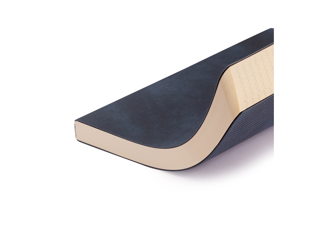 Оригинально и в тоже время ультрасовременно выглядит ежедневник благодаря своей визитной карточке - гибкая обложка из высококачественной экокожи с имитацией джинсовой ткани.